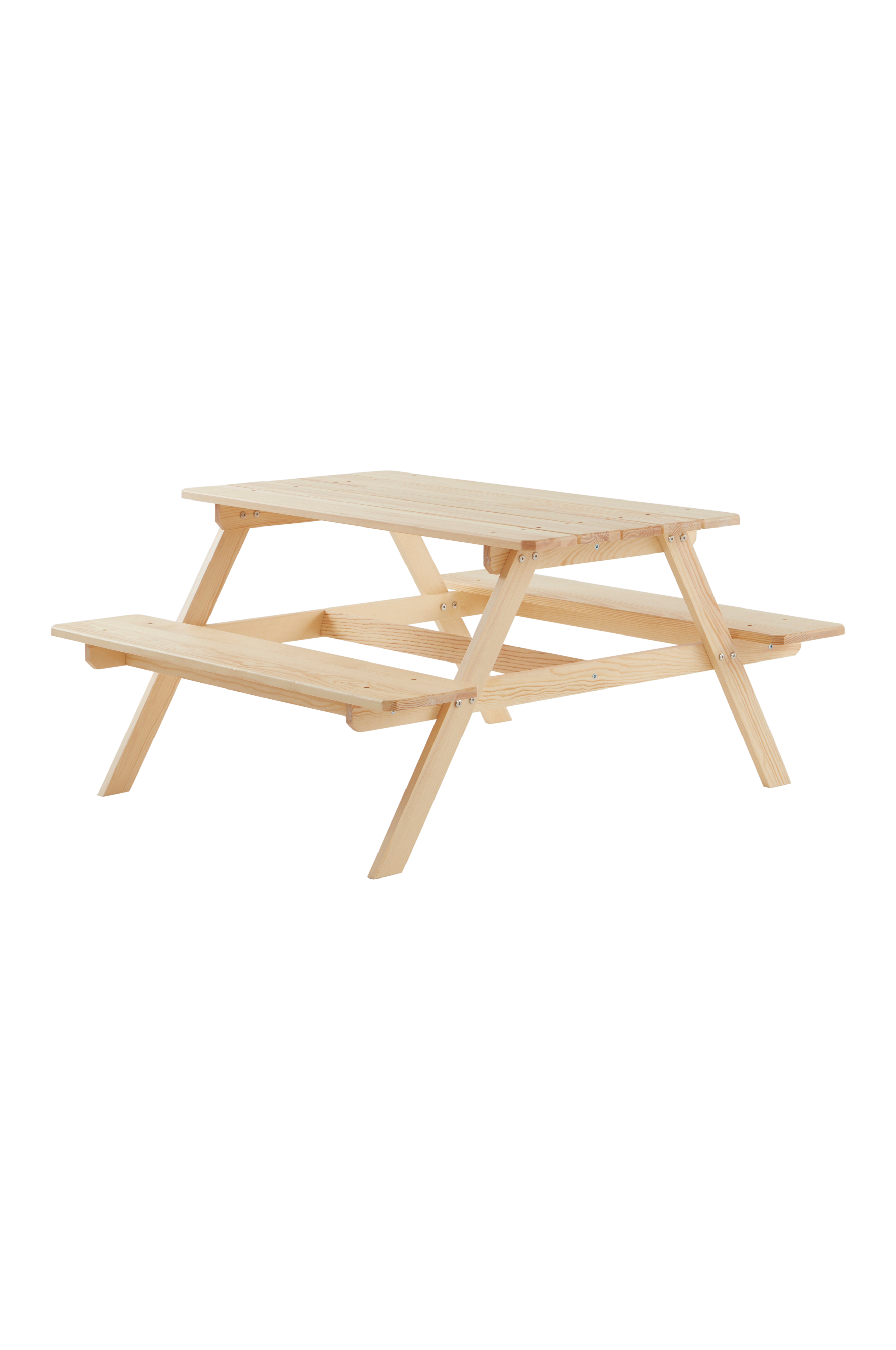 Meble piknikowe z drewna sosnowego pokrytego bezbarwnym lakierem. Zestaw składa się ze stołu i dwóch ławek, które w klasyczny sposób połączone są ze sobą tworząc jeden mebel. Niewielkie i dopasowane do wzrostu najmłodszych meble to najlepszy i najwygodniejszy sposób na piknik. Zestaw będzie idealnie pasował do ogrodu oraz do pokoju dziecięcego i zapewni wygodne miejsce do zabaw. Lakier na bazie wody. Wymaga częściowego montażu. Do produktu dołączona jest instrukcja montażu.