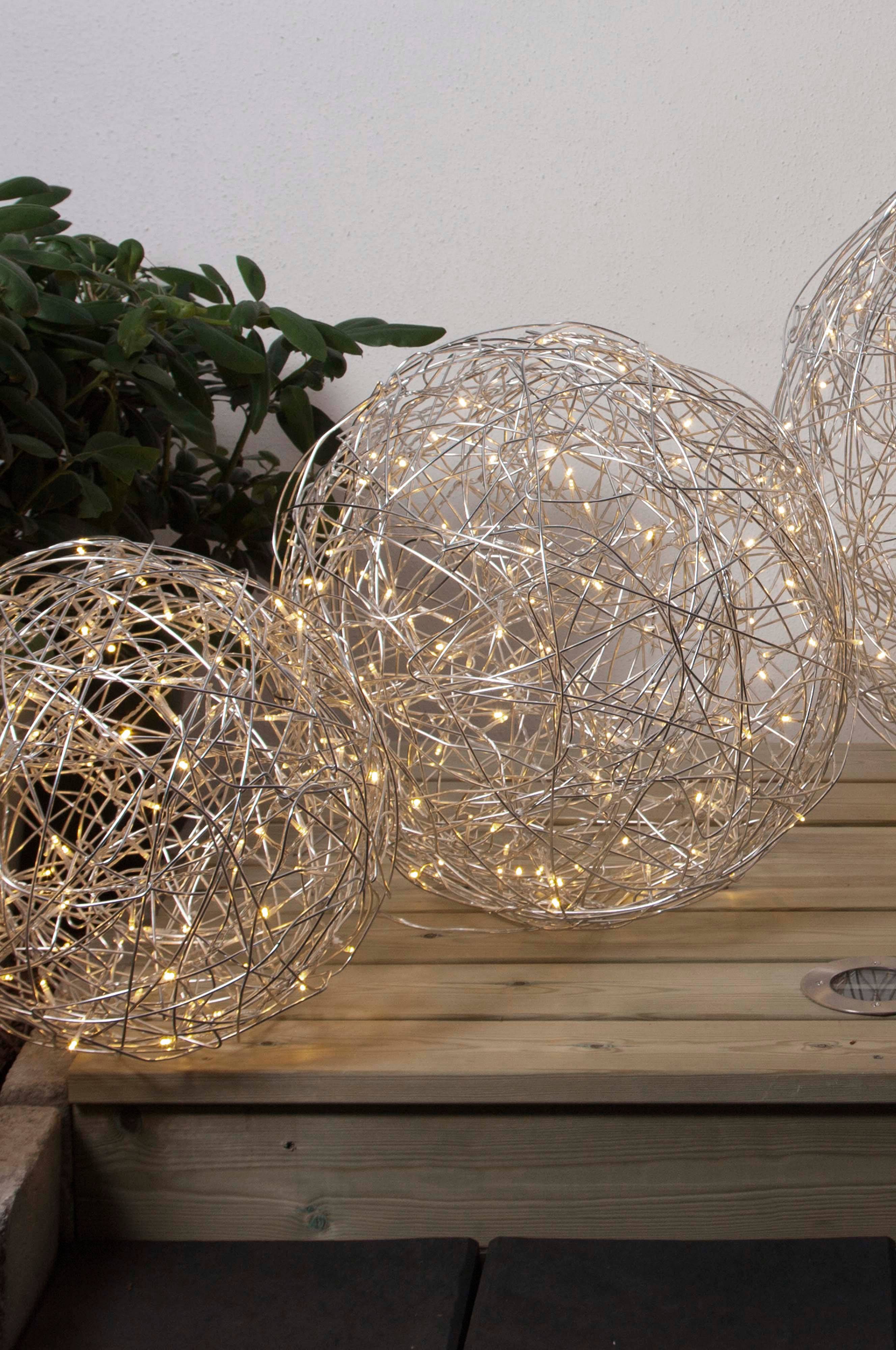 Dekoracyjna kula do użytku wewnątrz i na zewnątrz. Wewnątrz dekoracji znajduje się taśma świetlna LED, która roztacza ciepły, biały blask. Projekt: Charlotte Falk.