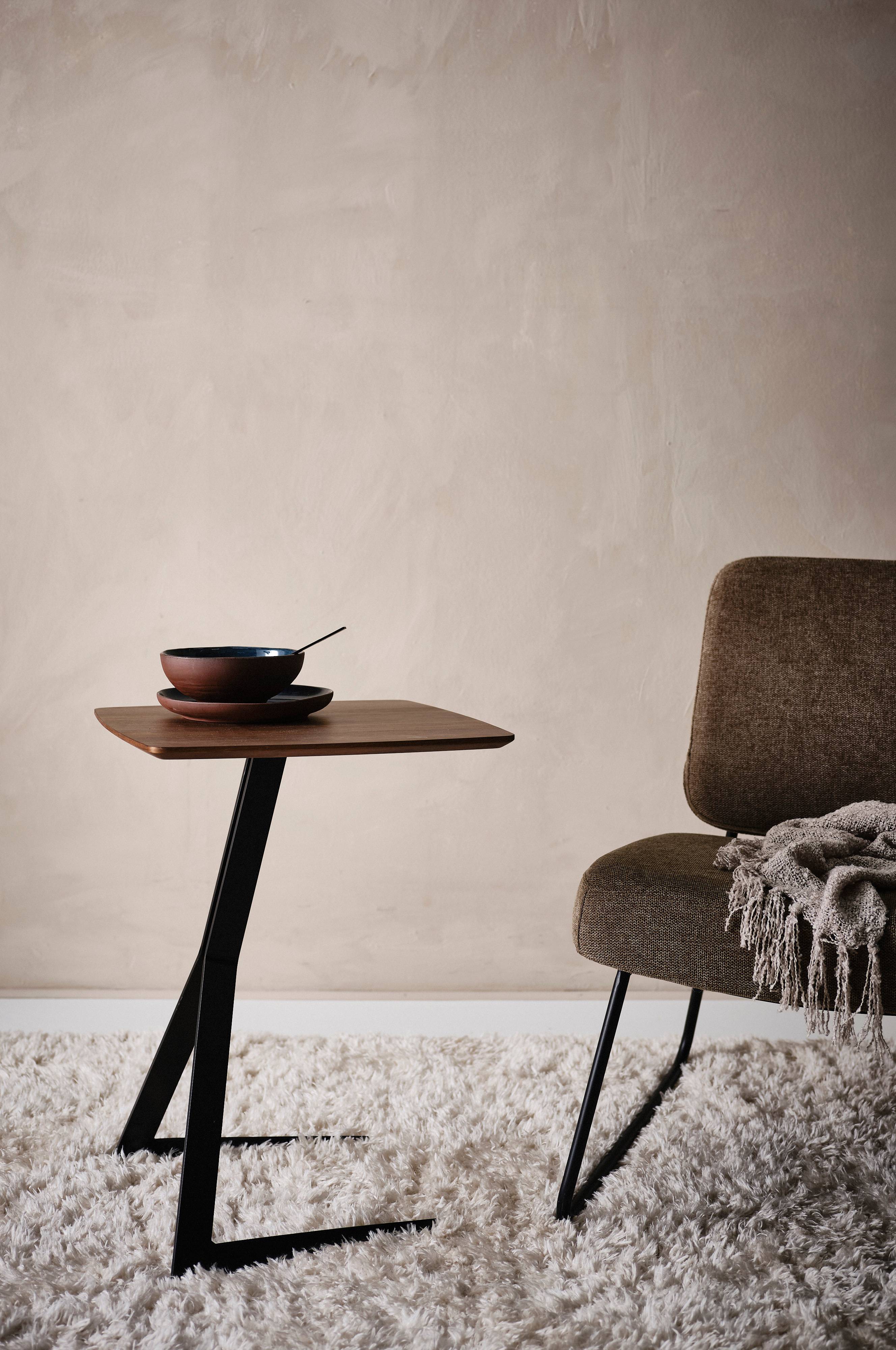 Stolik, który można wsunąć nad oparcie fotela lub sofy albo dostawić do kantu łóżka.