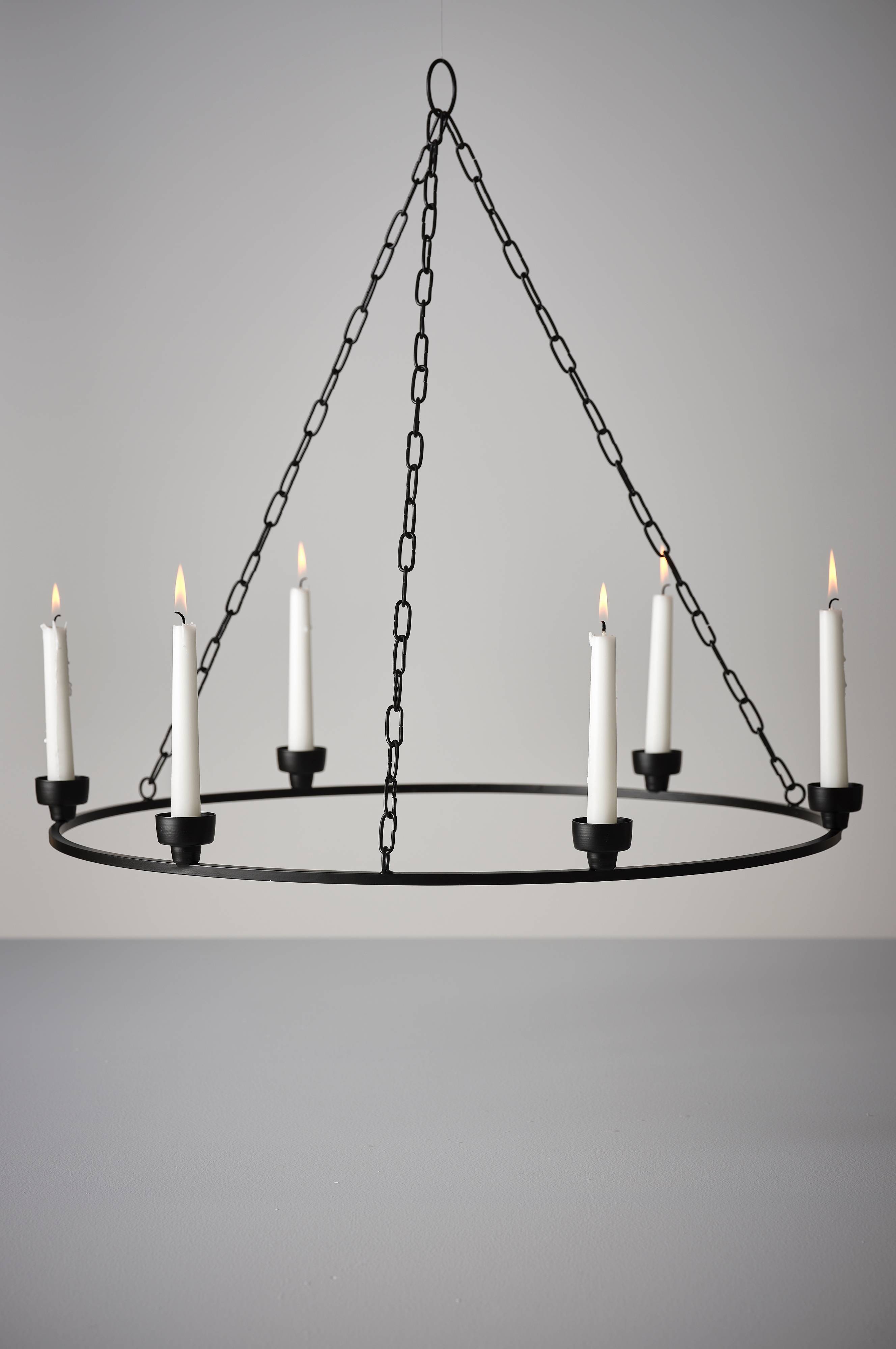 Żyrandol z lakierowanego proszkowo metalu z 6 uchwytami na świece lub świeczki typu „tea-light”. Stylowy żyrandol, który nada jadalni blasku. W prosty sposób stanie się całoroczną dekoracją na różnych obiadach - ze świerkowymi gałązkami na Boże Narodzenie, kwiatami na lato czy liśćmi eukaliptusa, które będą się pięknie prezentować przez cały rok.