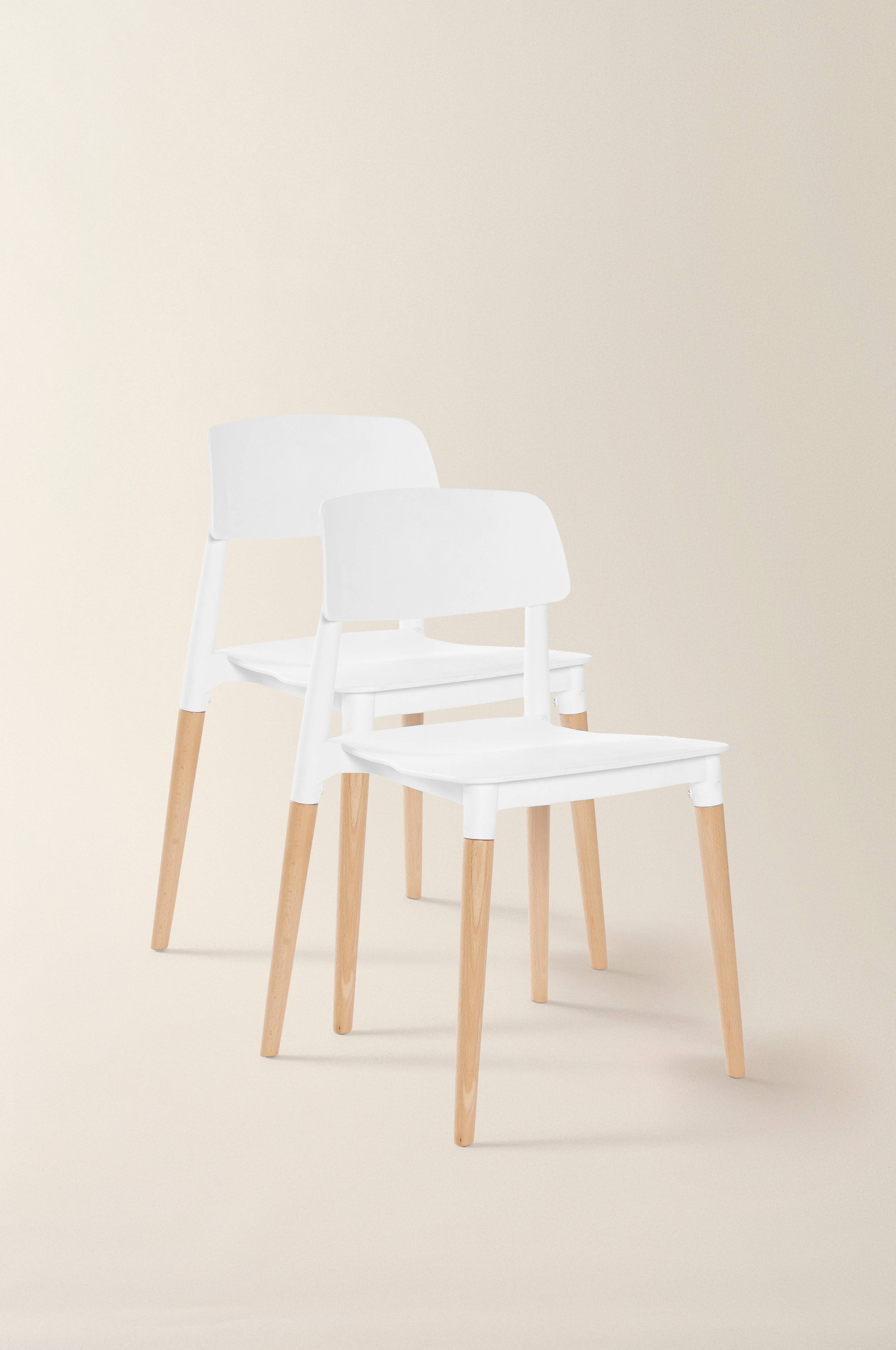 2 dające się na sobie układać krzesła z formowanego polipropylenu z bukowymi nogami. Nowoczesne krzesła o lekko zaokrąglonych oparciach i wspaniałym komforcie siedzenia. Krzesło sprawia wrażenie delikatnego i równie dobrze wygląda przy stole w jadalni, jak i samodzielnie, w przedpokoju. Wymaga częściowego montażu. Do produktu dołączona jest instrukcja montażu.