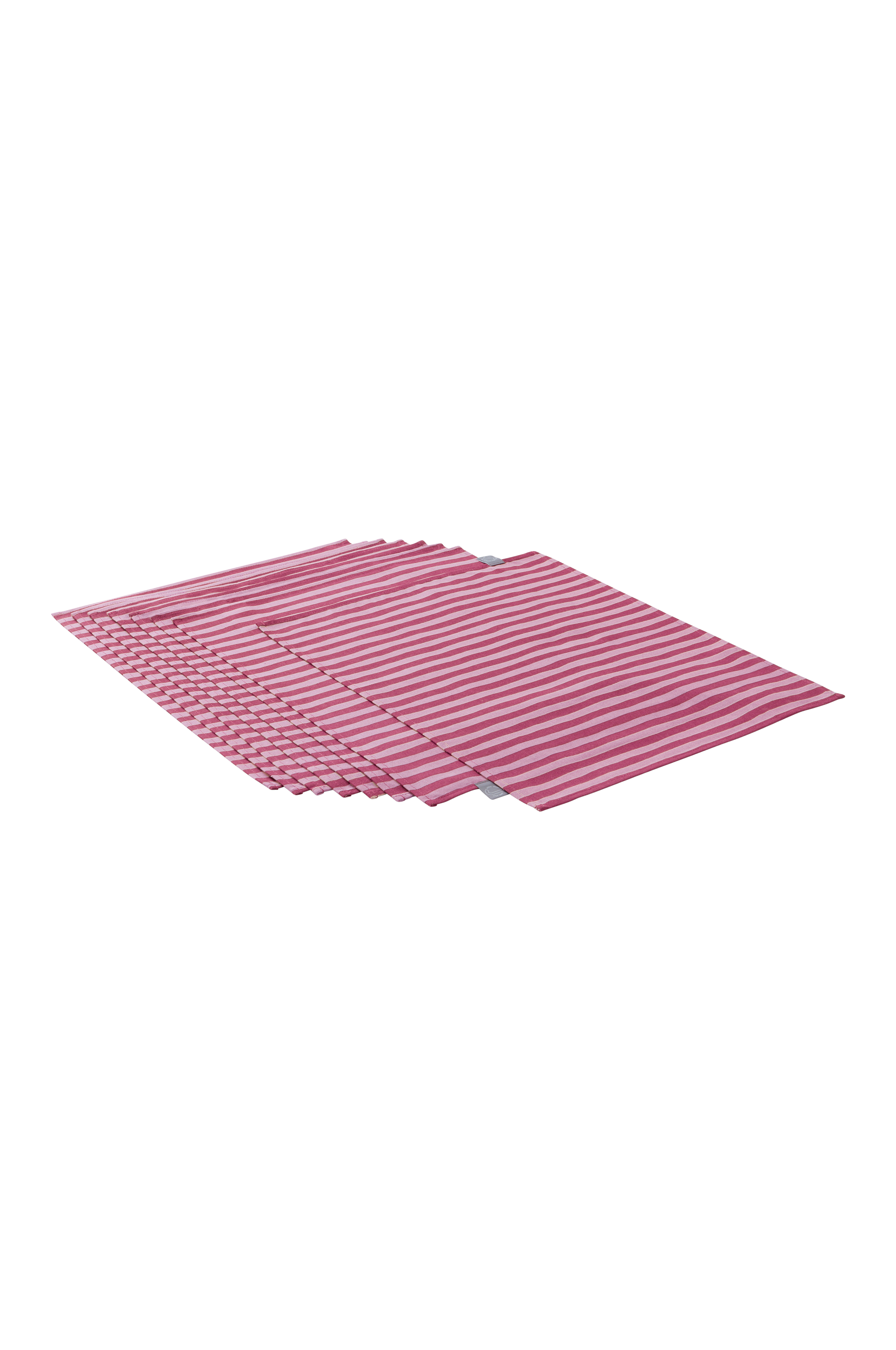 8 podkładek na stół z bawełnianej półpanamy z nadrukowanymi na tkaninie nieco nieregularnymi pasami w dwóch harmonijnych kolorach. Klasyczne paski są zawsze na czasie i pasują do wielu różnych stylów.