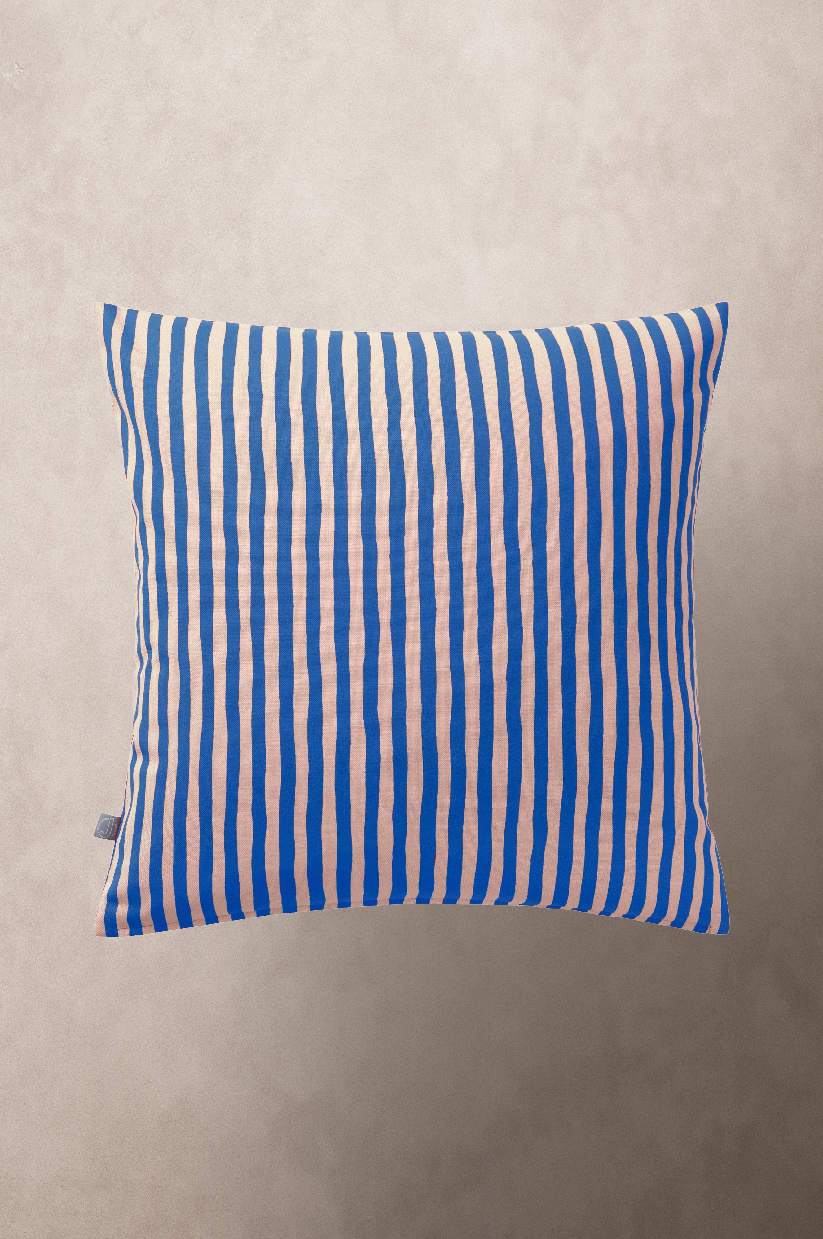 Poszewka dekoracyjna z bawełnianej półpanamy z nadrukowanymi na tkaninie nieco nieregularnymi pasami w dwóch harmonijnych kolorach. Klasyczne paski są zawsze na czasie i pasują do wielu różnych stylów. Zamek błyskawiczny w spodniej krawędzi.