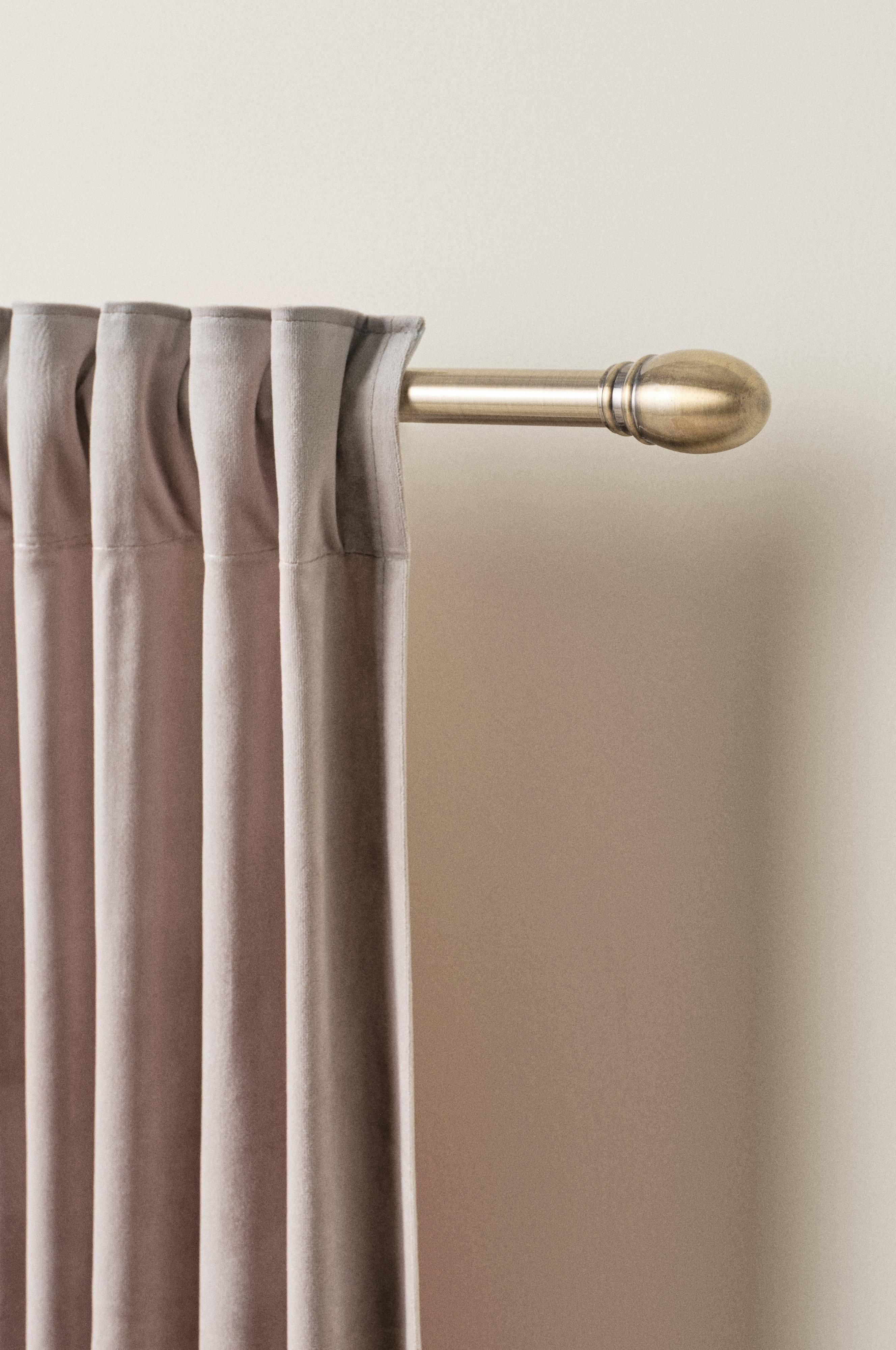 Karnisz z prętem i wspornikami z żelaza oraz końcówkami z profilowanego cynku. HAVANA marki Kirsch to pełen zestaw karniszy z pięknie uformowanymi gałkami na końcach. Karnisz wyposażony jest w regulację długości, dzięki czemu nie musisz martwić się niestandardowym wymiarem okien. Regulowane kotwy pozwalają samodzielnie ustawić odległość od ściany 10-15 cm, dzięki czemu zasłona może spływać swobodnie, nie opierając się o parapet. Gałki dociskane do karnisza. Dwie kotwy, śruby oraz kołek w zestawie. Weź pod uwagę, że najlepszy w danym przypadku rodzaj zawieszenia zależy od powierzchni, na której ma zostać zamontowany.