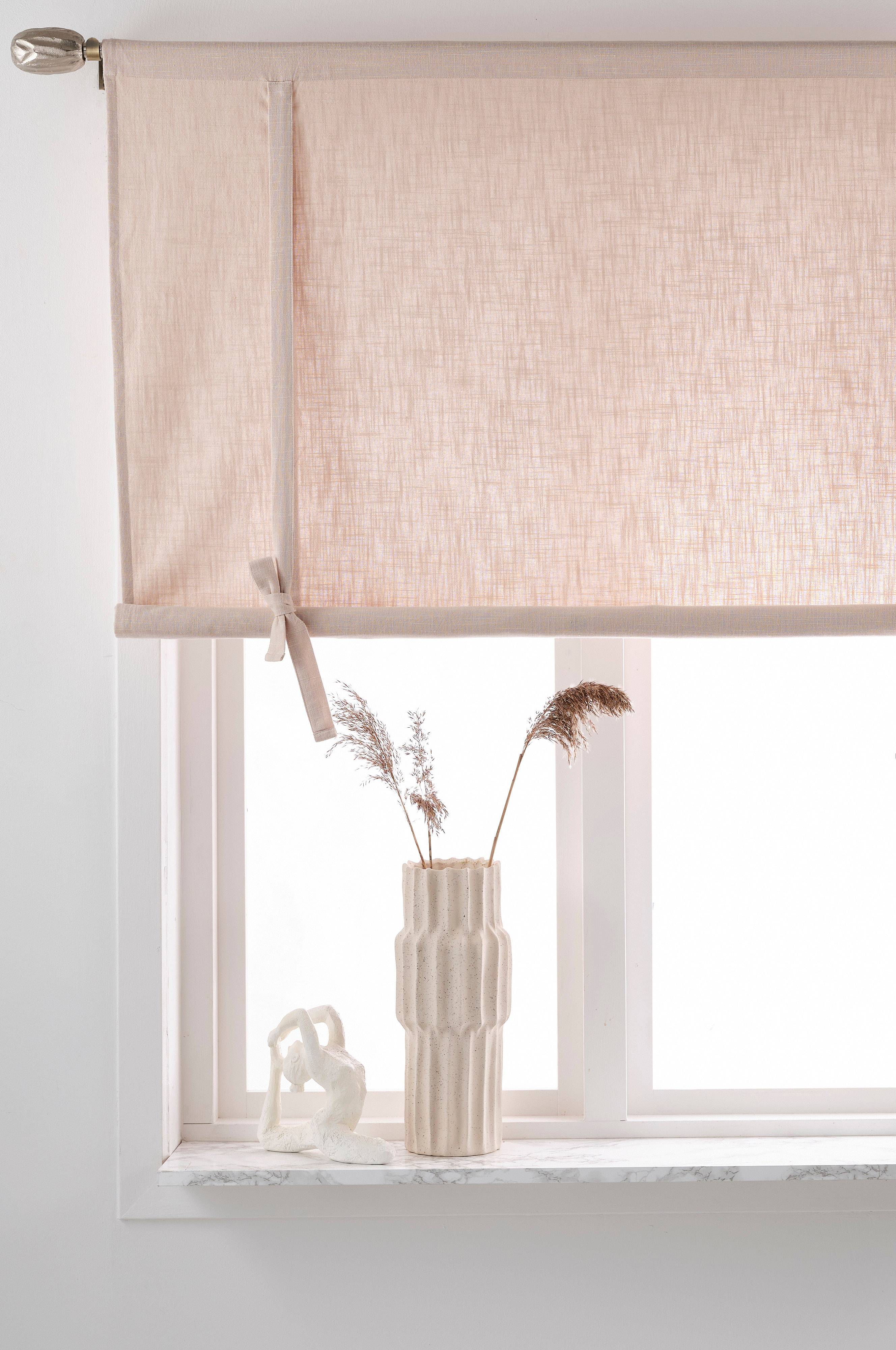 Gładka roleta z bawełny. Do zawieszenia na karniszu. Brak wzoru uspokaja i sprawia, że Twój dom jest miękki i wygodny zarazem. Wysokość rolety regulowana jest zawiązywaną taśmą.