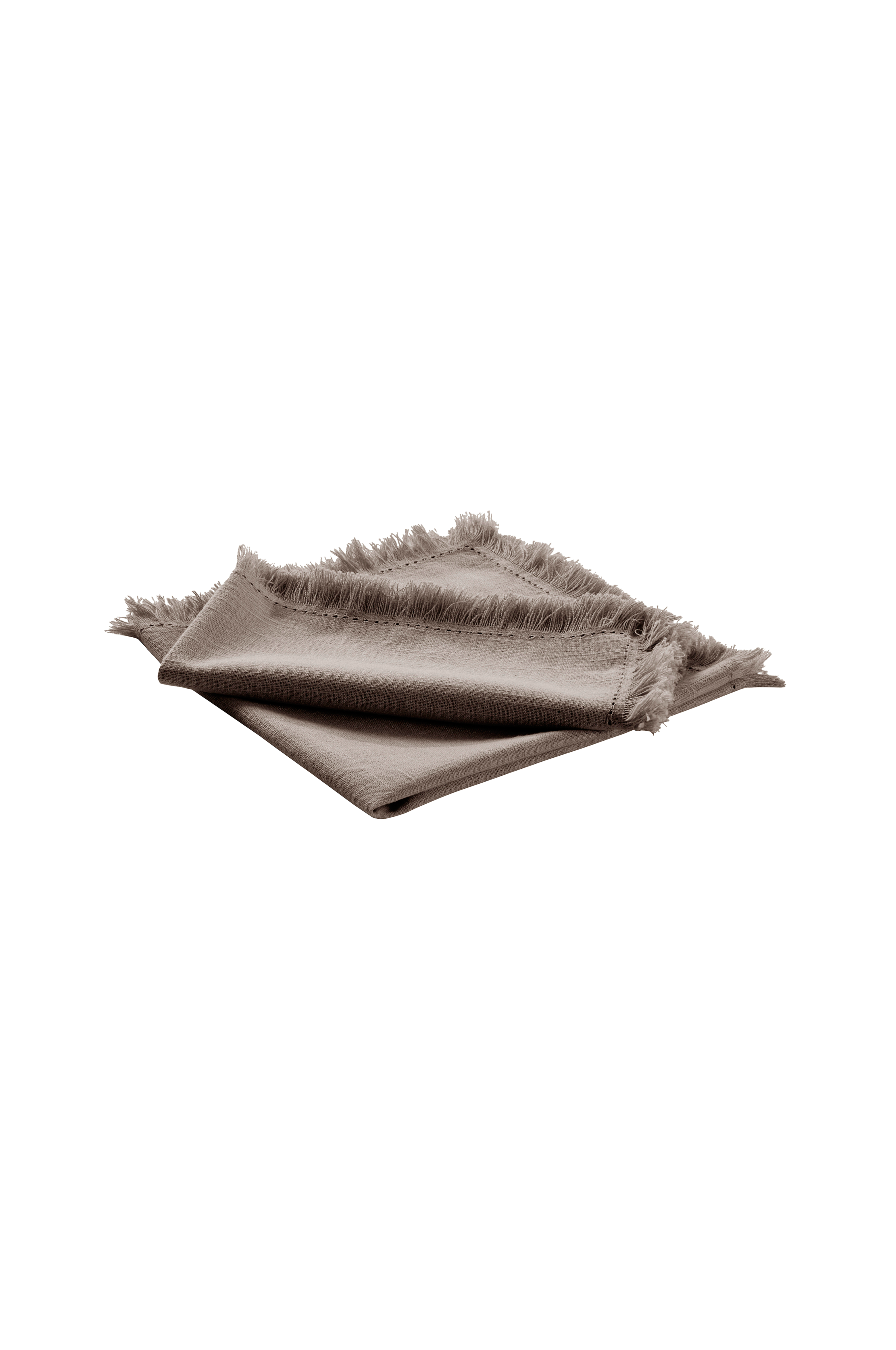 2 serwetki z gładkiej bawełny z dekoracyjnymi frędzlami wzdłuż boków. Kiedy urządzasz pokój jednokolorowymi tkaninami warto puścić wodze fantazji przy wyborze tapet, porcelany i detali.