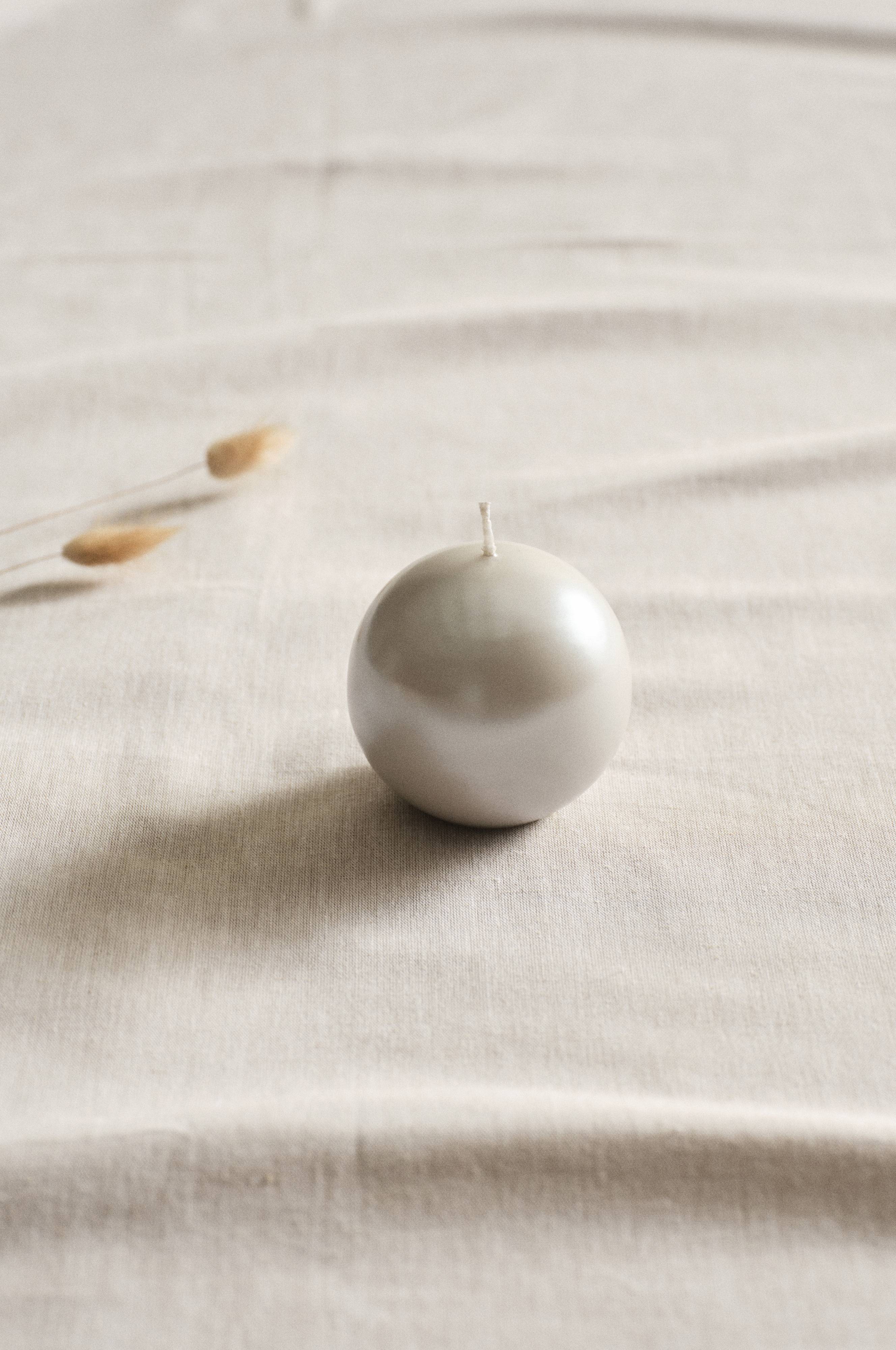 1 świeca kula wykonana z parafiny i maczana w barwniku o perłowym połysku. Ta okrągła, urocza świeca została wykonana ręcznie w Szwecji. Paląca się świeca stworzy przytulny nastrój po zapadnięciu ciemności. Parafina wspaniale się spala, a znak jakości RAL gwarantuje, że paląc się parafina daje niewiele sadzy i dymu.