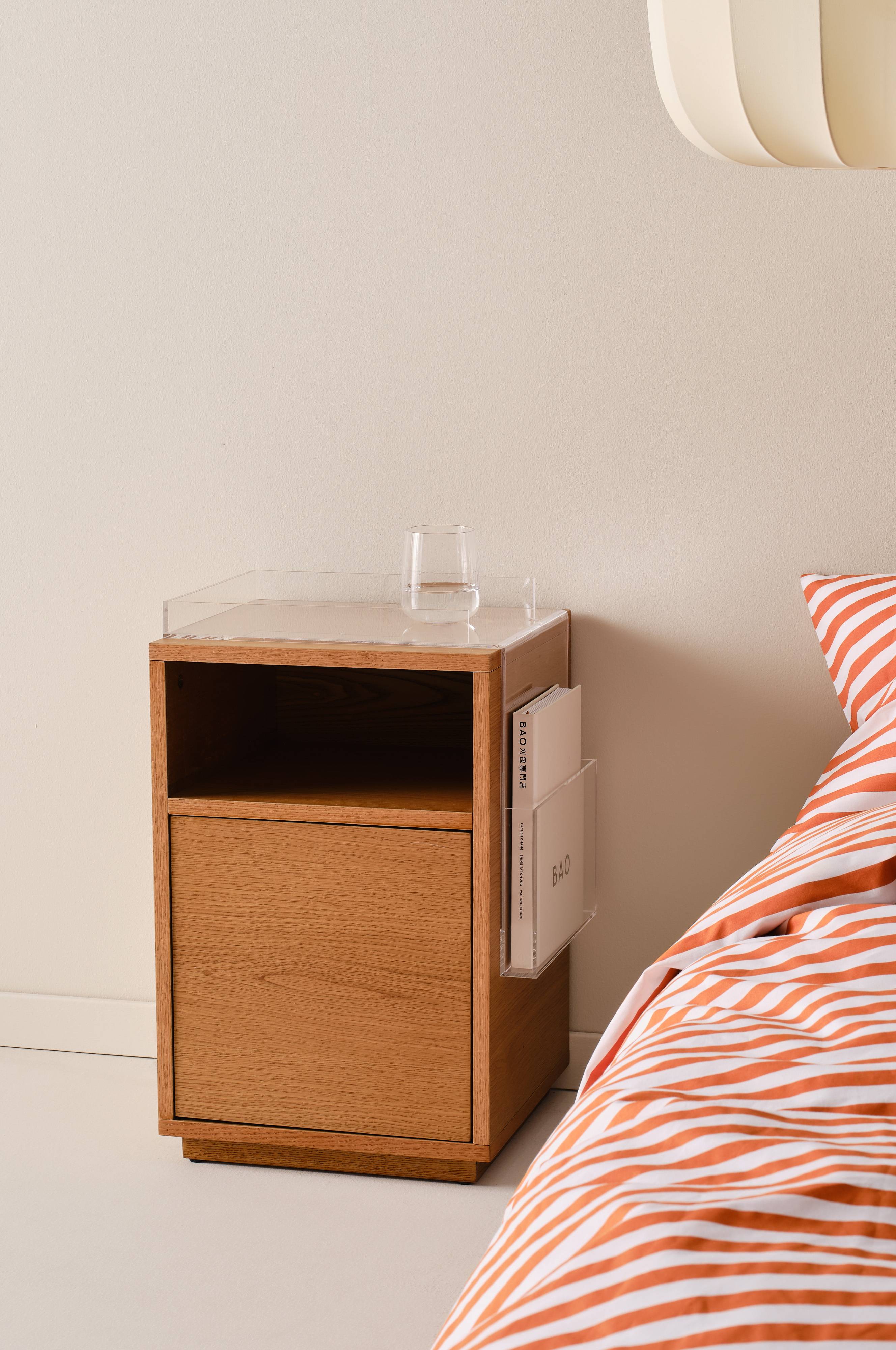 Stolik nocny HUSTOFTA wniesie nowoczesną elegancję do Twojej sypialni dzięki swojemu eleganckiemu designowi. Wyposażony w uniwersalne drzwiczki, które można zamontować po obu stronach, stolik ten oferuje elastyczność i styl. Akrylowa półka na górze zapewnia elegancką powierzchnię ekspozycyjną, podczas gdy szafka i górna półka oferują dużo miejsca do przechowywania niezbędnych rzeczy na noc. Wzbogać wystrój swojej sypialni tym funkcjonalnym i nowoczesnym stolikiem nocnym.
