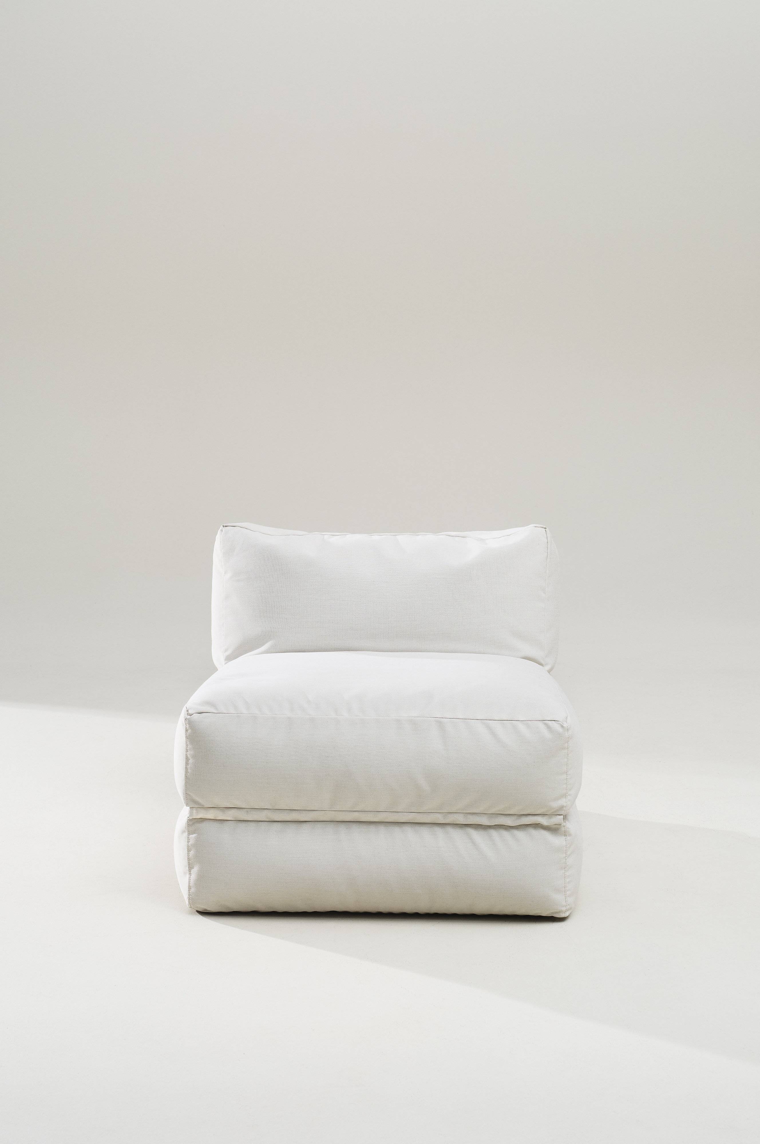 IBIZA jest bardzo miękki i dopasowuje się do ciała, pokrywa je tkanina z tkanego na płasko akrylu, a wypełnienie stanowi granulat, który nadaje mu odpowiedniej miękkości. Pokrycie jest wytrzymałe i wodoodporne, więc IBIZA sprawdzi się równie dobrze wewnątrz, jak i na zewnątrz. Pokrycie jest zdejmowane.