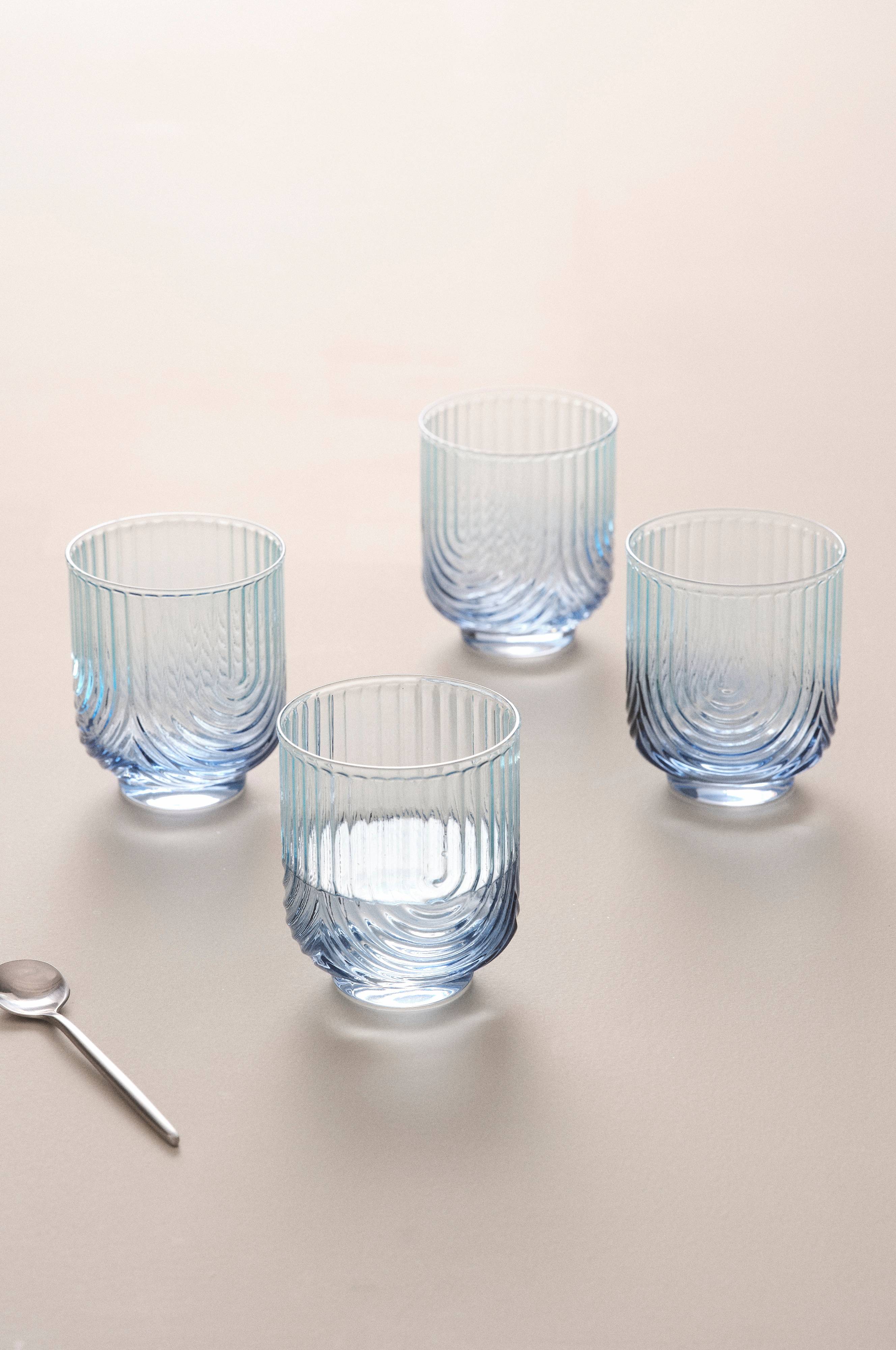 4 kieliszki z barwionego szkła. Kieliszki z serii IMANI ozdobione są pięknym wypukłym wzorem w kształcie łuku. Z kieliszkami IMANI każde nakrycie stołu, to na co dzień, jak i to od święta, zyska dodatkowy blask.