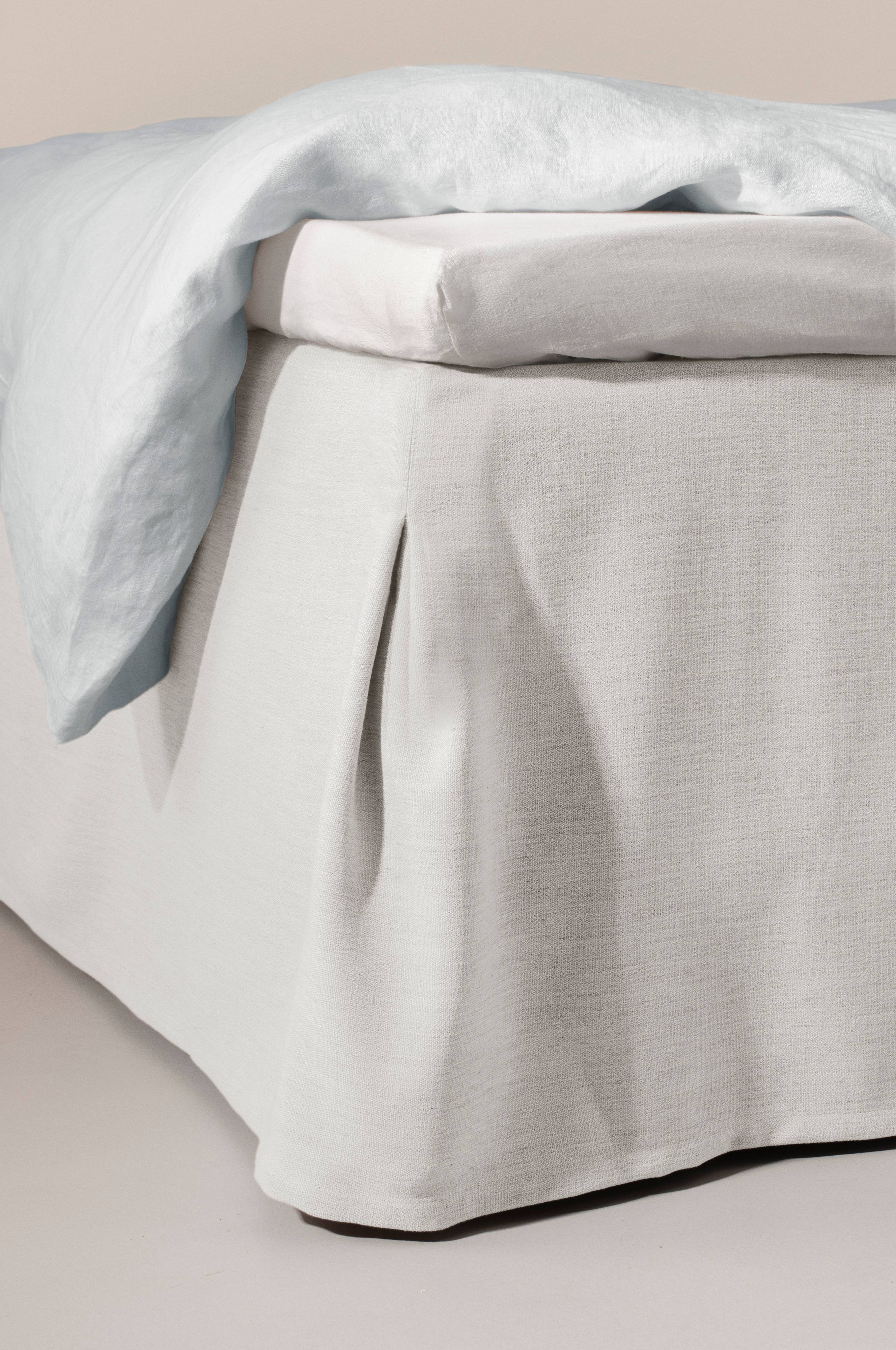 Lambrekin łóżkowy z poliestru z domieszką lnu. Tkanina ma delikatną strukturę i piękny połysk oraz mieni się wieloma kolorami. Gładkie boki i zszyte narożniki tworzące kontrafałdy zapewnią stylową oprawę dla łóżka. Lambrekin wykonany jest z tkaniny łatwej w czyszczeniu Gramatura tkaniny tworzącą falbanę wynosi 160 g/m², górna część 80 g/m².