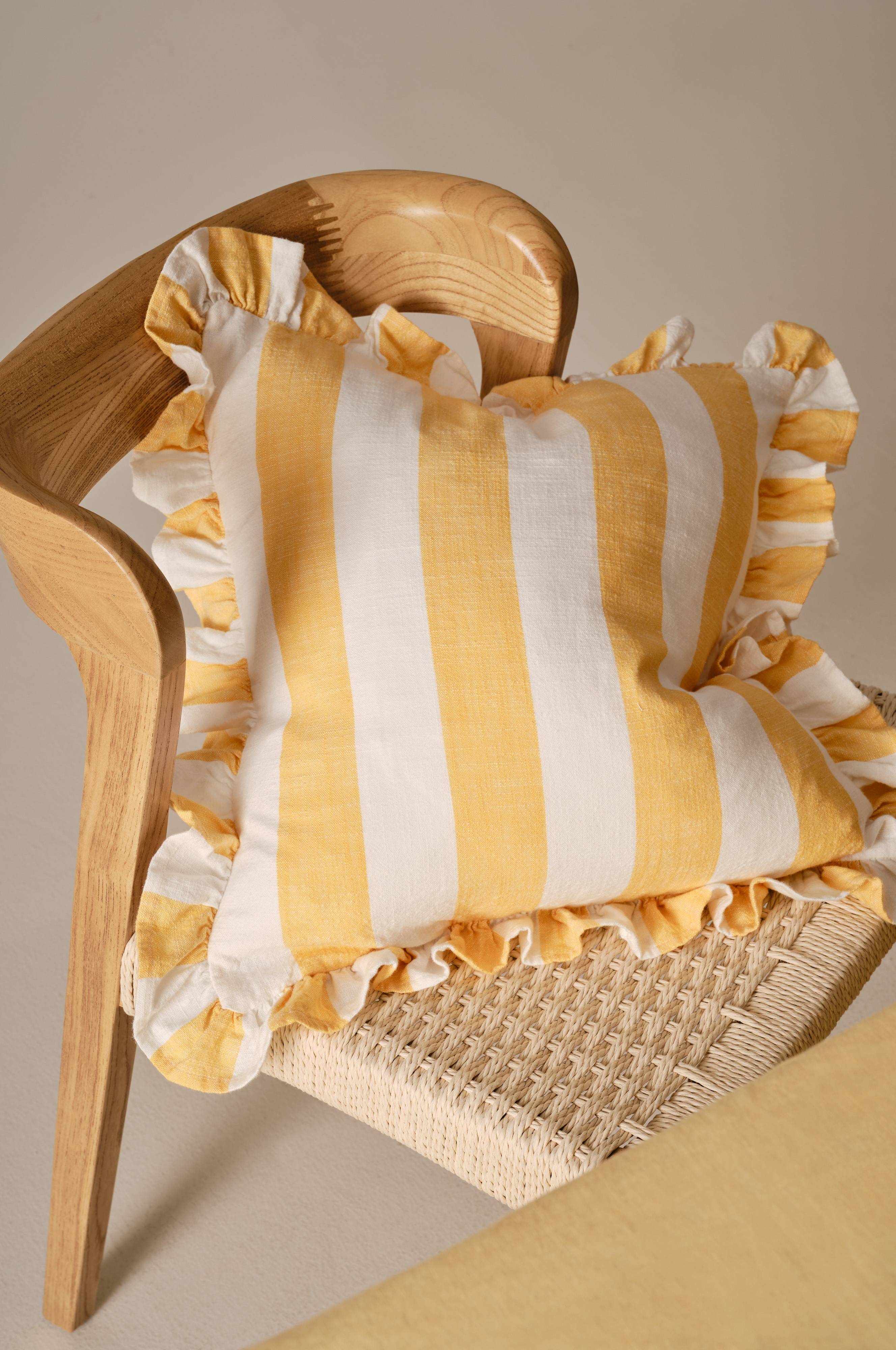 Odmień swój dom dzięki poszewce na poduszkę IRIS. Wykonana z bawełnianej tkaniny, posiada subtelny wzór w paski i elegancką falbankę. Inspirowana stylem vintage, ta poszewka na poduszkę dodaje ponadczasowej estetyki, dzięki czemu jest oszałamiającym akcentem do każdego salonu lub sypialni. Idealna dla tych, którzy cenią sobie modny wystrój wnętrz.