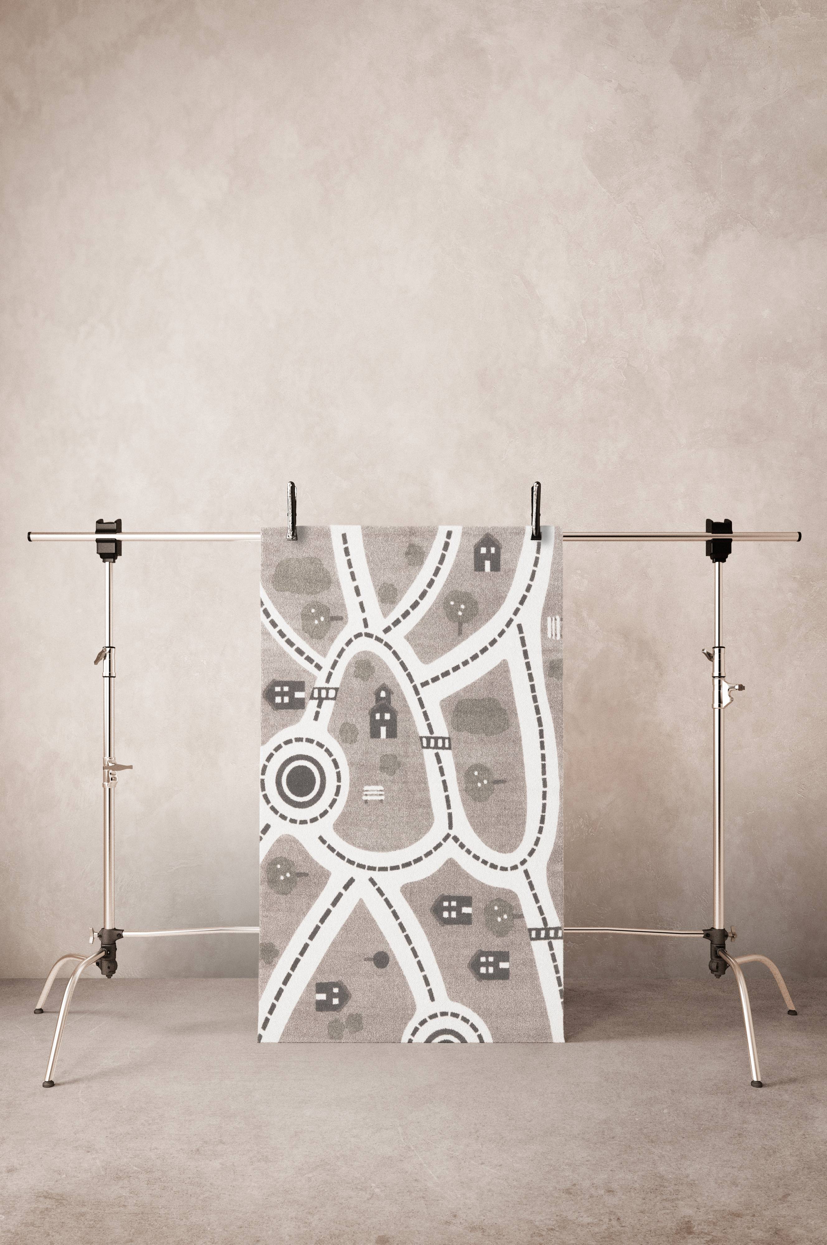 Tkany ręcznie dywan dziecięcy z miękkiej bawełny z nadrukowanym wzorem. Uroczy i radosny dywanik z motywem dróg i domów zaprasza do fantastycznej zabawy. Grubość 0,2-0,3 cm. 850-950 g/m².