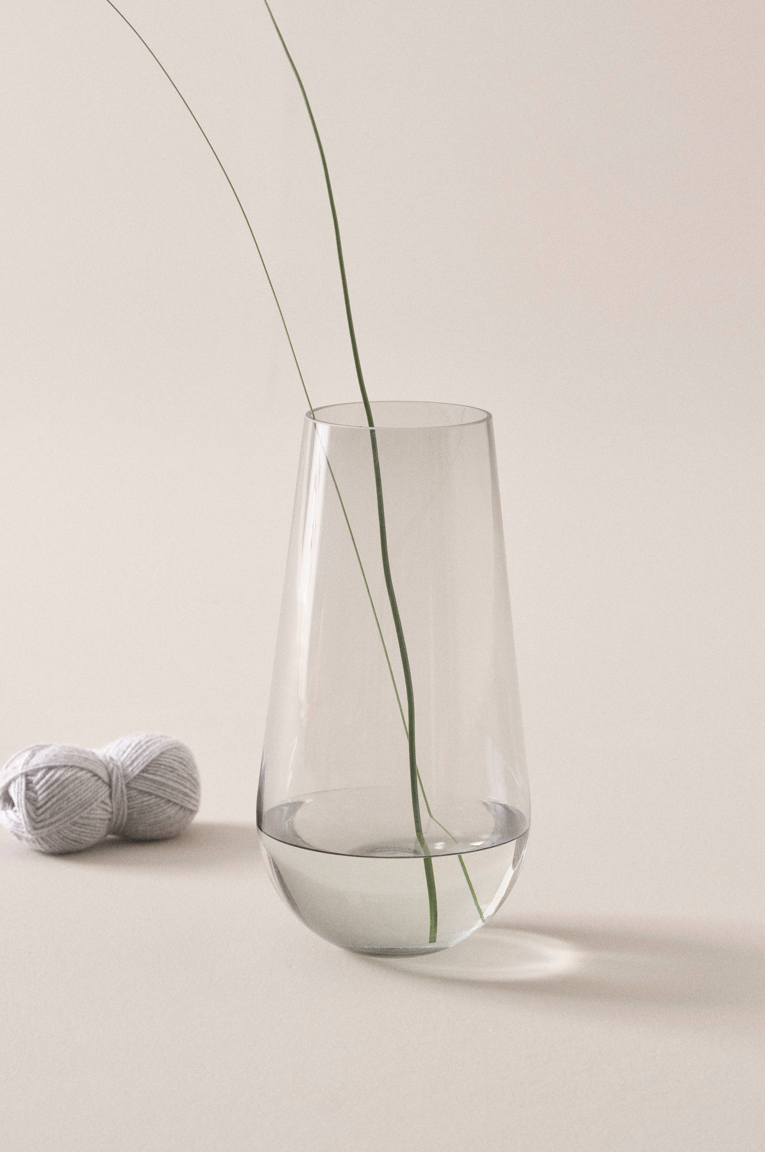Szklany wazon o pięknym, stylowym kształcie, który umieści kwiaty i gałązki w centrum uwagi. Wazon podkreśli piękno wysokich, ciętych kwiatów, które wypełnią całe wnętrze przyjemną atmosferą.
