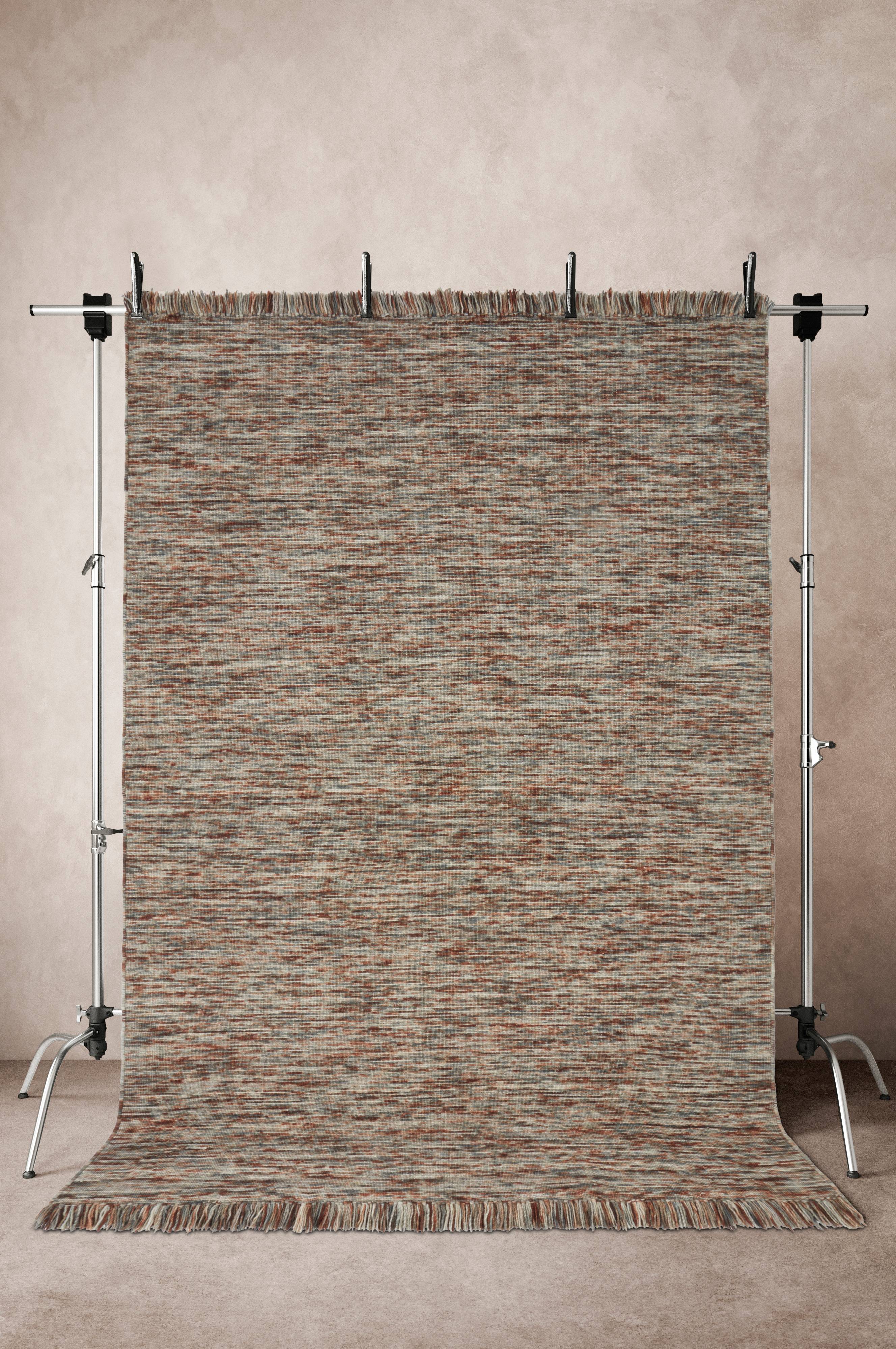 Dywan z mieszanej wełnianej przędzy w pięknym odcieniu, wzdłuż krótszych boków dywan został obszyty mocną taśmą z frędzlami. Podkład wykonany został z bawełny/poliamidu/poliestru. Dywan z wełny to naturalnie ciepłe i przyjemne podłoże, które jest wytrzymałe i odporne na zabrudzenia. Długość frędzli 8 cm. Grubość 0,9 cm. 2000 g/m².