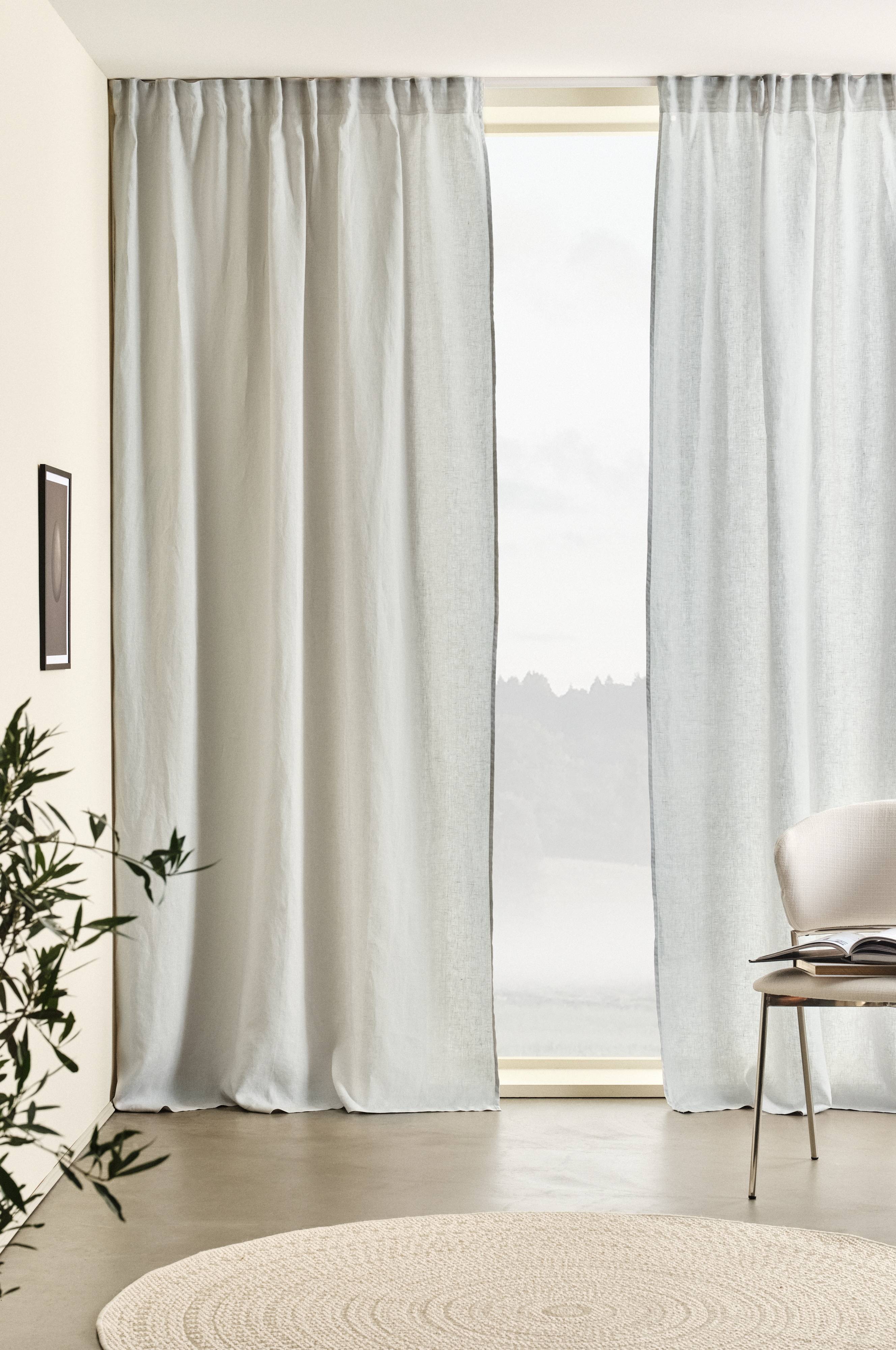 Dwie długości zasłon z prawdziwego lnu z certyfikatem European Flax. Zasłony są gładkie, nieco cieńsze i wygodne. Len w JONIE jest prany, aby był bardziej miękki i elastyczny w dotyku. Len to jakość, która z czasem staje się bardziej miękka i wygodna, więc będziesz cieszyć się JONIE przez długi czas.