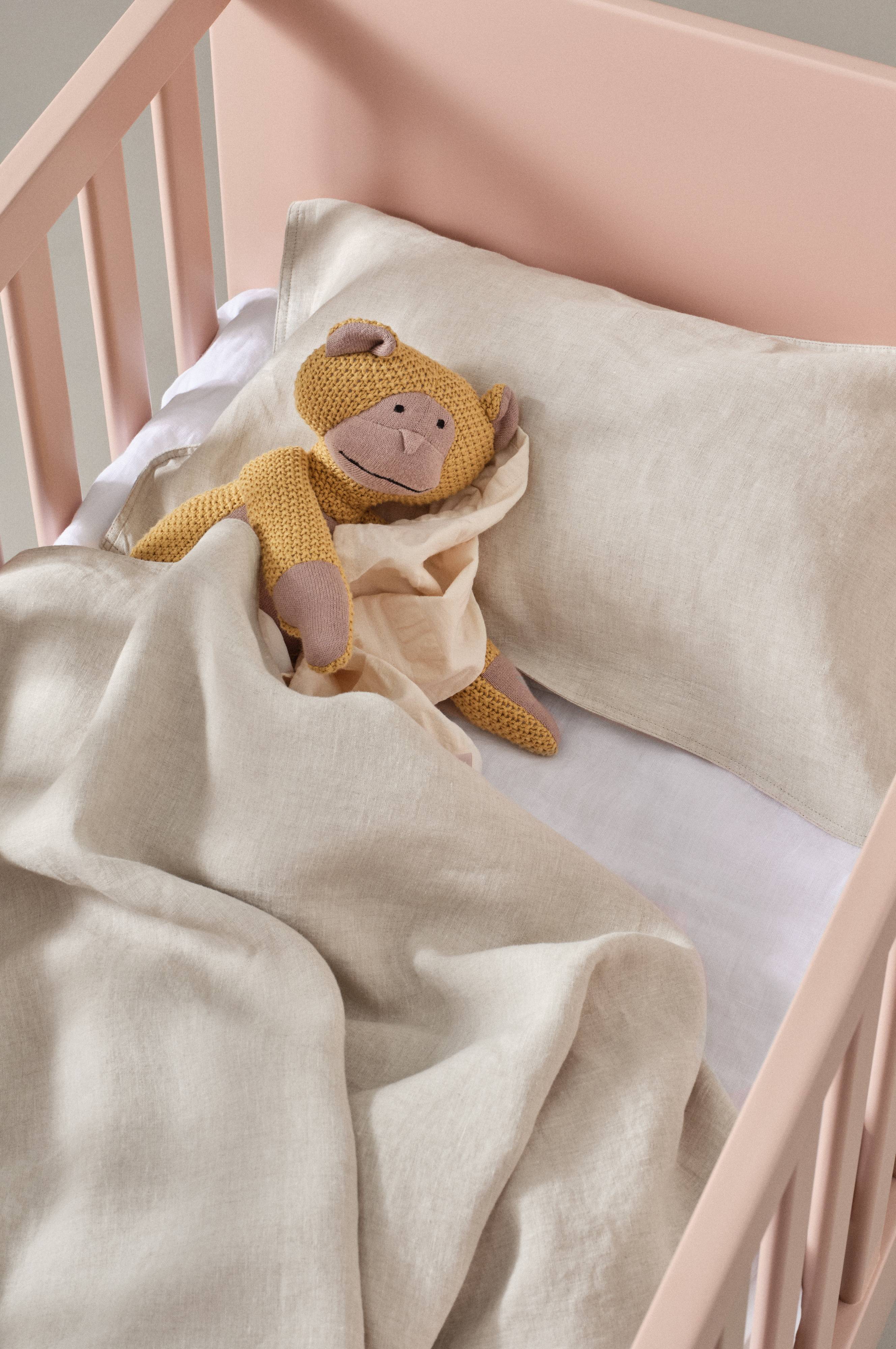 Dwuczęściowy zestaw z poszwą na kołdrę i poszewką na poduszkę wykonany z prawdziwego lnu z certyfikatem European Flax. Zestaw nadaje się do łóżeczek dziecięcych. Pościel jest gładka, nieco cieńsza i wygodna. Pościel w JONIE jest prana, aby była bardziej miękka i elastyczna w dotyku. Pościel jest ciepła, gdy jest zimno i chłodna do spania, gdy jest gorąco. Po praniu len ma jeszcze bardziej miękką teksturę, która jest przyjemna dla skóry. Świeża kolorystyka jest inspirowana naturą.