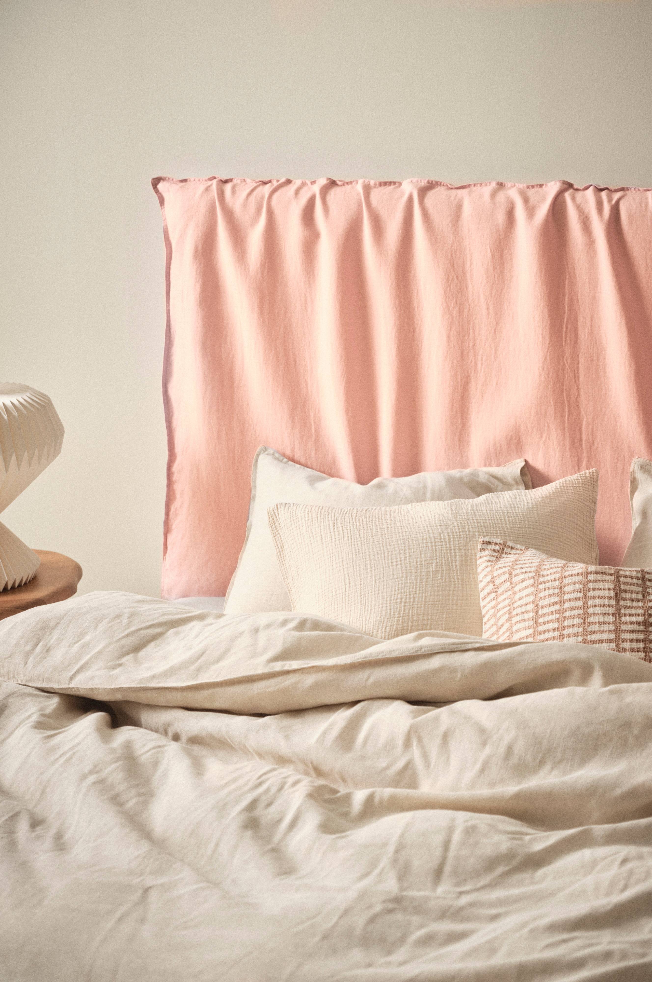Pokrowiec dla Twojego zagłówka. Pokrowiec wykonany jest z prawdziwego lnu, który posiada certyfikat wydany przez European Flax. Naciągnij pokrowiec na zagłówek do łóżka, aby w mgnieniu oka odświeżyć jego stylizację. Obszerny i luźny rozmiar nadaje całości swobodny wygląd. Tkanina wykonana jest z elastycznej, nieco grubszej tkaniny o przyjemnym wyglądzie. Len w serii JONIE został wyprany, dzięki czemu zyskał miękkość i elastyczność. Ponadto, len jest tkaniną, która z czasem zyskuje na miękkości i urodzie, dlatego seria JONIE będzie Ci służyć przez długie lata. Za inspirację dla świeżych odcieni występujących w tej kolekcji posłużyły kolory natury. Waga tkaniny 160 g/m².