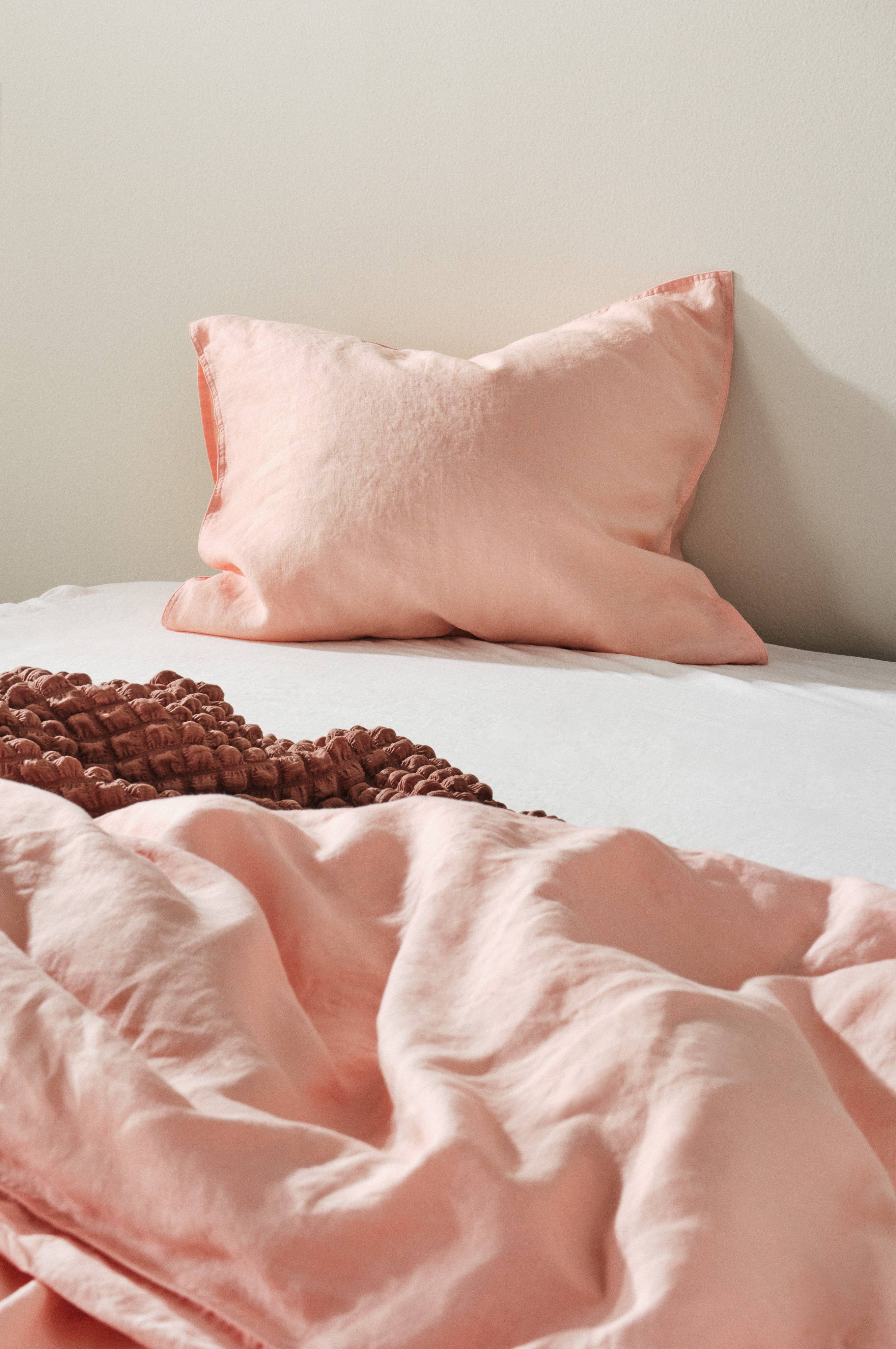 1 poszewka na poduszkę z prawdziwego lnu, który posiada certyfikat wydany przez European Flax. Poszewka wykonana jest z elastycznej, nieco grubszej tkaniny o przyjemnym wyglądzie. Len w serii JONIE został wyprany, dzięki czemu zyskał miękkość i elastyczność. Len grzeje, kiedy robi się chłodno i schładza podczas snu, kiedy na dworze panuje upał. Po praniu pościel zyskuje jeszcze bardziej miękką strukturę, która jest przyjemna dla skóry. Za inspirację dla świeżych odcieni występujących w tej kolekcji posłużyły kolory natury. Waga tkaniny 160 g/m². Gęstość splotu materiału wynosi 104 TC. (Gęstość splotu materiału oznacza ilość przeplecionych ze sobą nici, thread count, na cal kwadratowy materiału. Im wyższa gęstość tym lepsza jakość. Wyjątkiem są tkaniny z lnu, które zazwyczaj mają rzadki splot, co przekłada się na wygodę używania.)