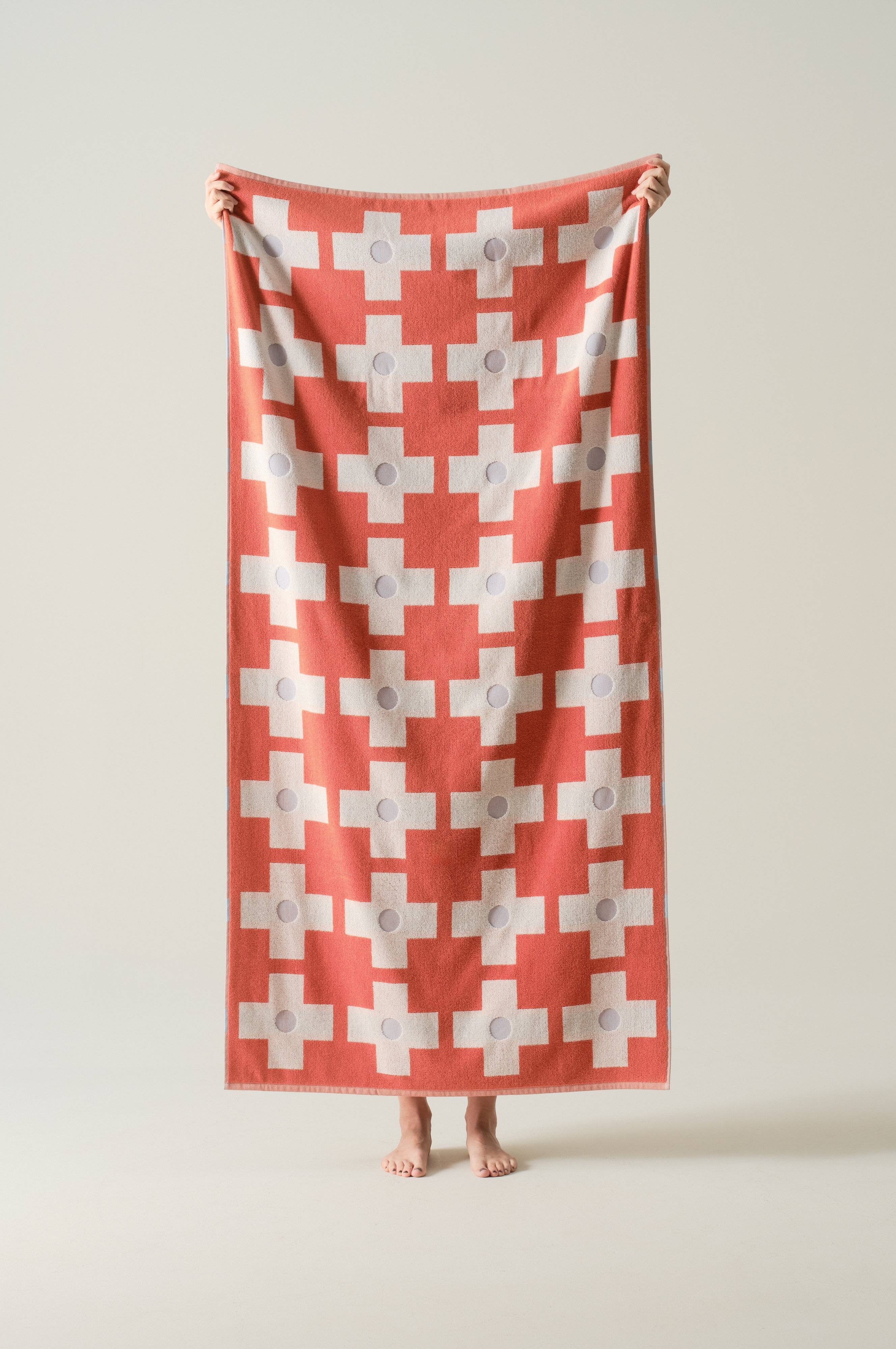 Otul się luksusem dzięki ręcznikowi plażowemu MAROCCO, wykonanemu z miękkiej bawełny frotte. Jego podwójny splot przędzy zapewnia odwrotny wzór z każdej strony, oferując unikalny i nowoczesny akcent na twoje plażowe dni. Barwiony przędzą wzór w kropki zapewnia szykowny i nowoczesny wygląd, idealny dla tych, którzy uwielbiają modny wystrój domu. Idealny na kojące dni nad wodą, ręcznik plażowy MAROCCO zapewnia komfort i styl.