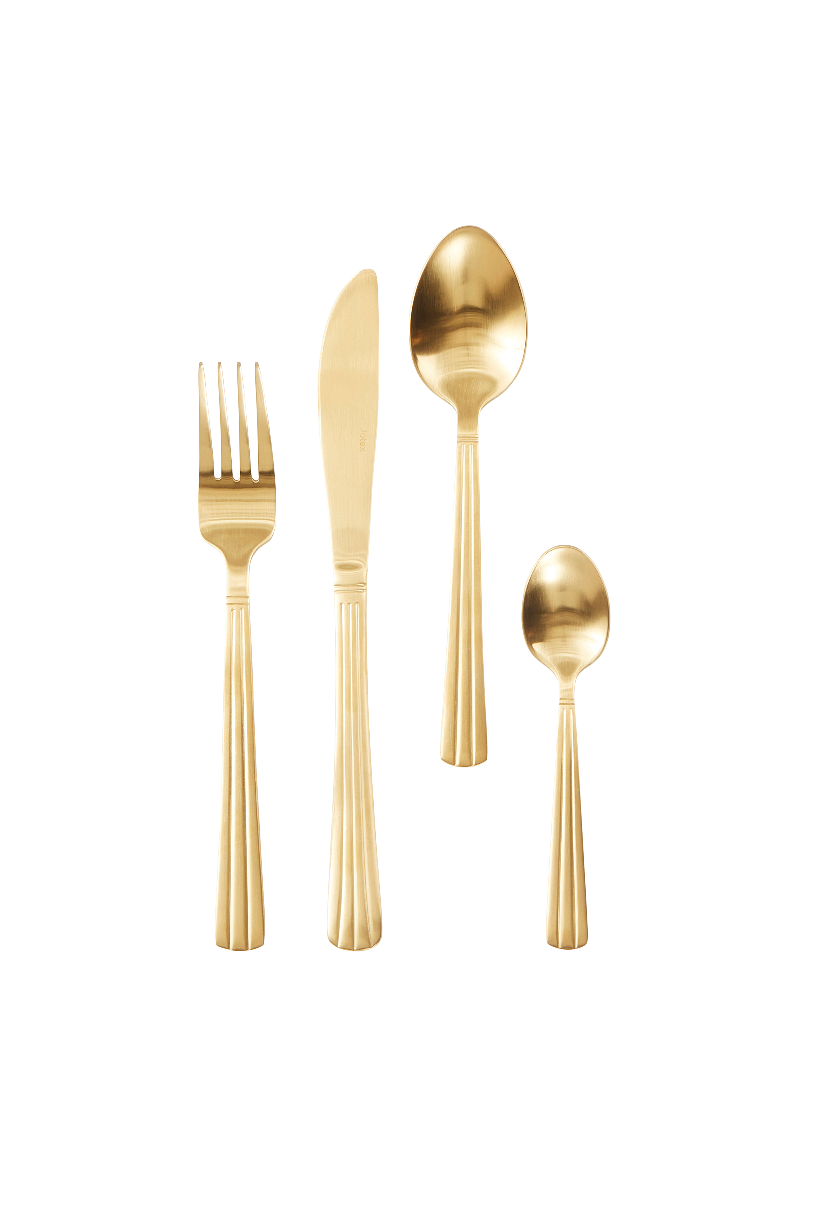 Zestaw sztućców złożony z 16 części o klasycznym i przyjemnym designie, ze żłobionymi uchwytami. Składa się z czterech widelców, noży, łyżek i łyżeczek. Zestaw sztućców pasuje do wielu różnych nakryć, zarówno nowoczesnych jak i tradycyjnych.