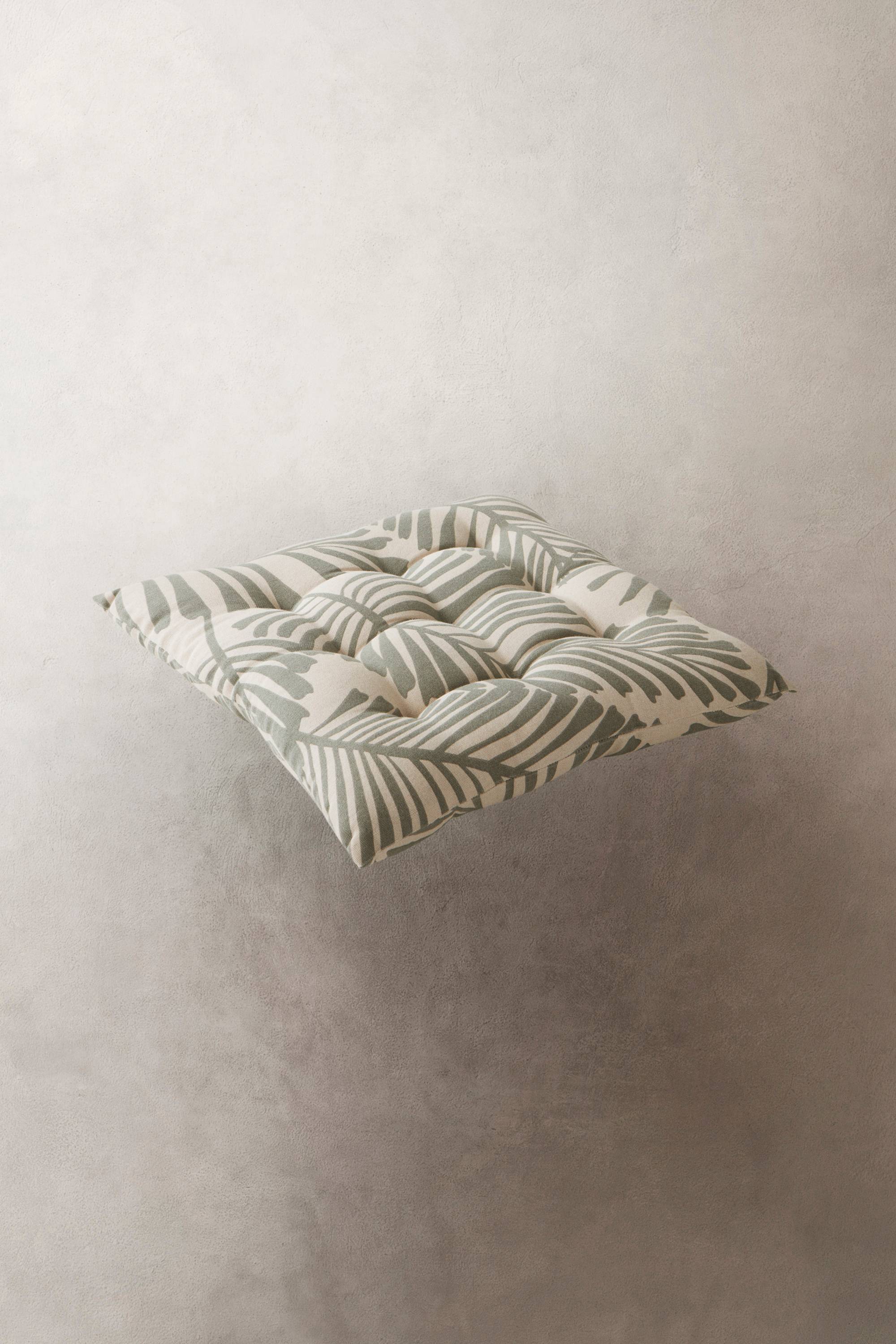 Poduszka do siedzenia z półpanamy z nadrukowanym wzorem. Każda poduszka ma 9 głęboko wszytych guzików. Tropikalna inspiracja spotyka czysty, graficzny styl i tworzy wzór, który łatwo dopasować, zarówno do innych wzorów jak i do gładkich, jednokolorowych powierzchni. Udekoruj swoje krzesła pięknymi i wygodnymi poduszkami do siedzenia.