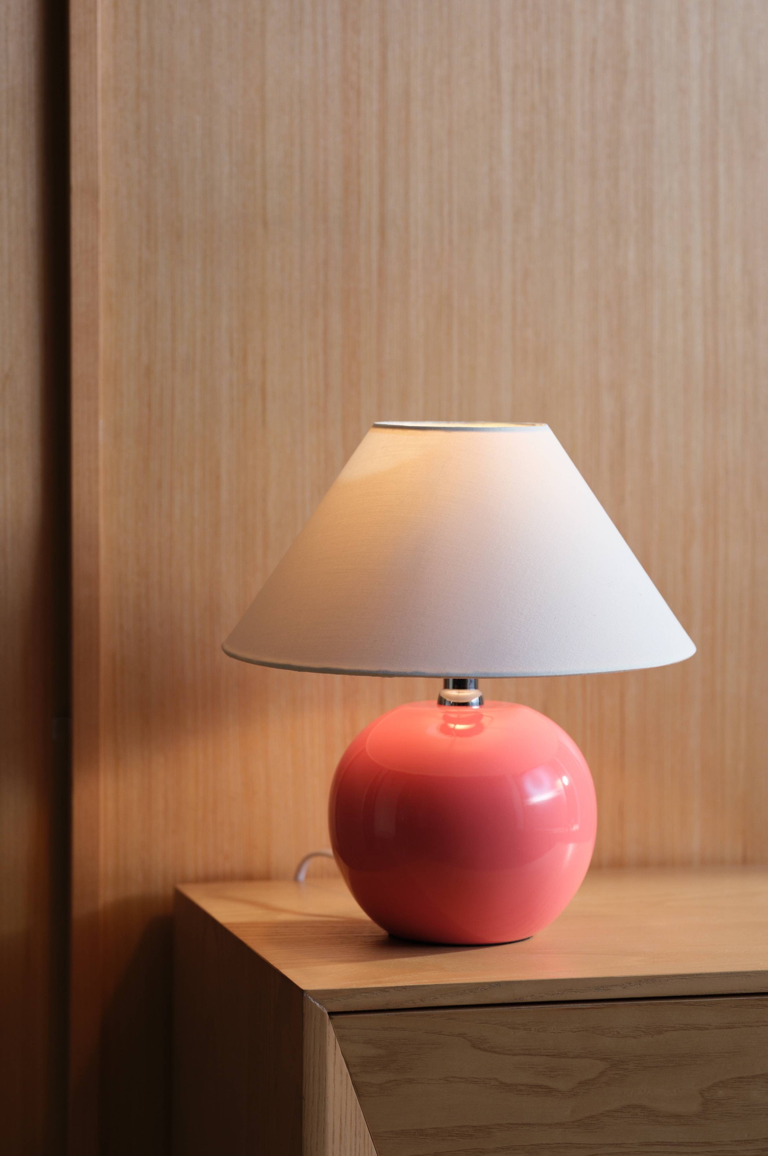 Lampa stołowa KARAMELL wniesie szyk do wystroju Twojego domu. Wyposażona w miękki, bawełniany klosz i błyszczącą ceramiczną podstawę, ta lampa o wysokości 29 cm oferuje stylową równowagę formy i funkcji. Elegancki stojak z białej stali i chromowany uchwyt dodają jej współczesnego uroku. Dzięki praktycznemu przełącznikowi kablowemu i kompatybilności z żarówkami E14 o maksymalnej mocy 8 W, jest idealna do stworzenia przytulnej atmosfery. Żarówka nie wchodzi w skład zestawu.