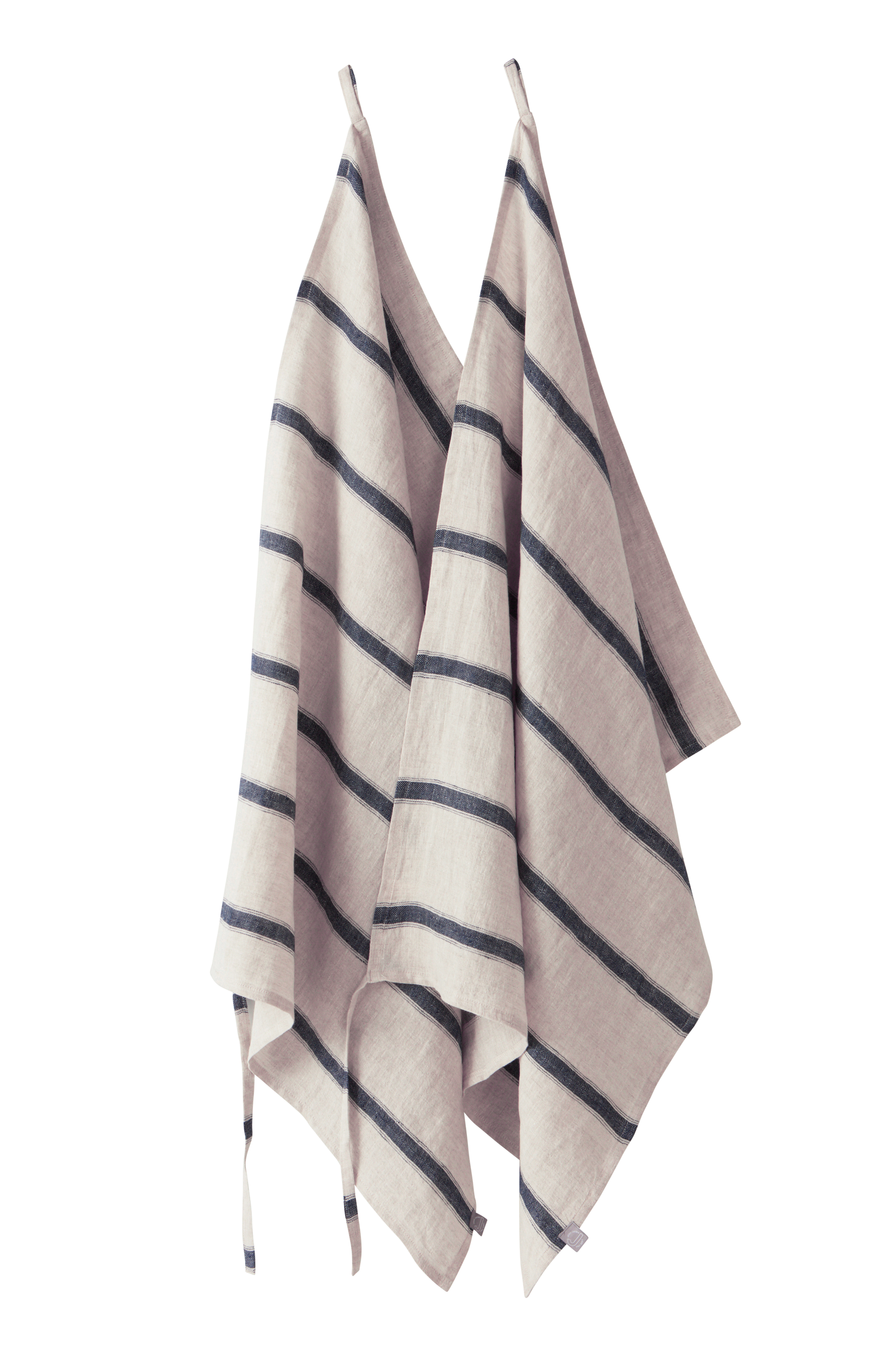 2 ręczniki kuchenne z tkanego w prążki lnu. Tkanina z lnu nadaje wnętrzom wspaniały, naturalny charakter, a dzięki lamówce wykonanej z barwionej przędzy ręczniki będą komponować się z każdym stylem, od uroczych wiejskich aranżacji po stylową klasykę.