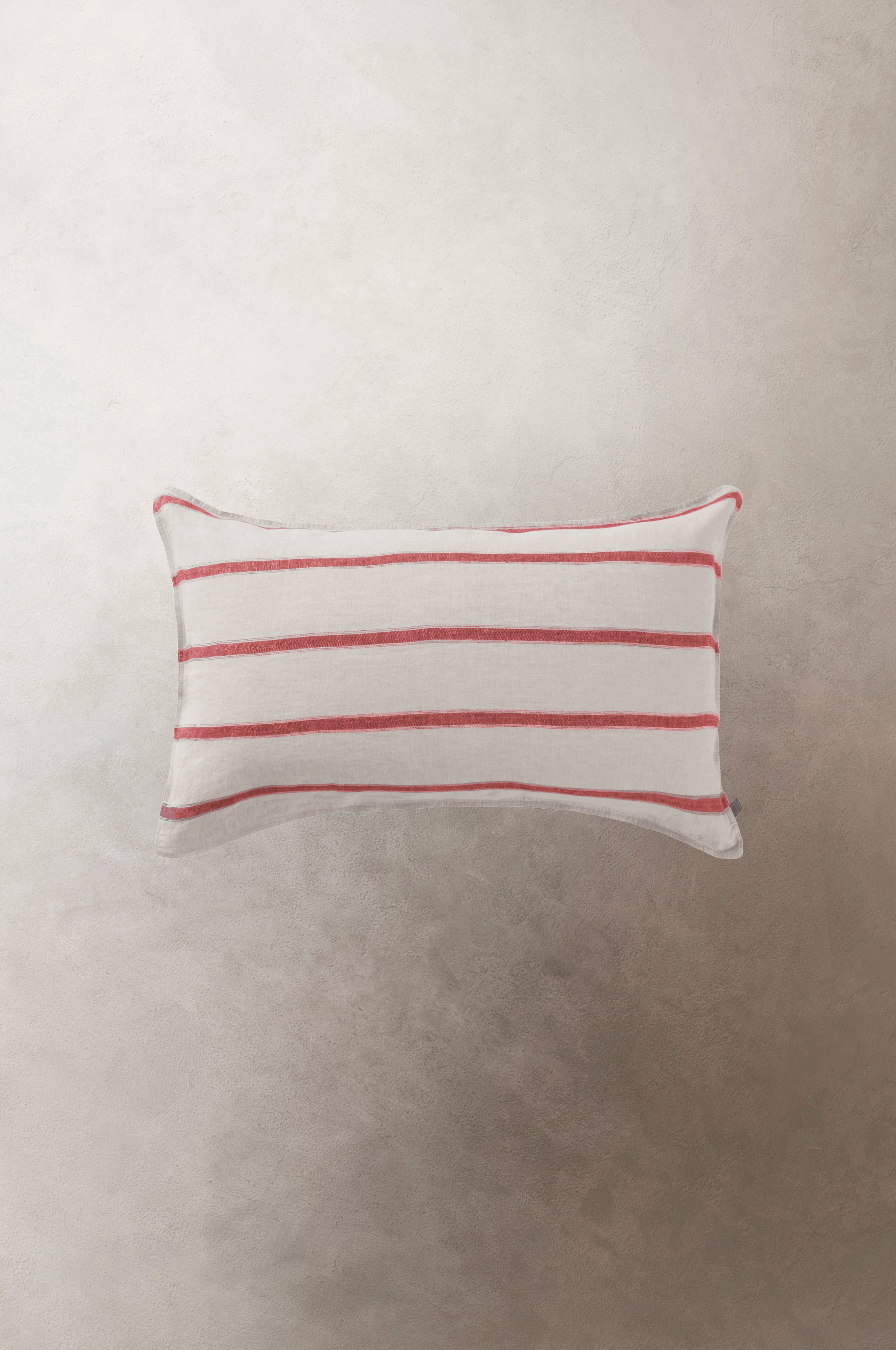 1 poszewka dekoracyjna z tkanego w prążki lnu. Poszewka ma podwójne szwy wokół krawędzi, które tworzą delikatne i dyskretne obszycie. Zamek błyskawiczny z tyłu. Tkanina z lnu nadaje wnętrzom wspaniały, naturalny charakter, a dzięki lamówce wykonanej z barwionej przędzy poszewka będzie komponować się z każdym stylem, od uroczych wiejskich aranżacji po stylową klasykę.