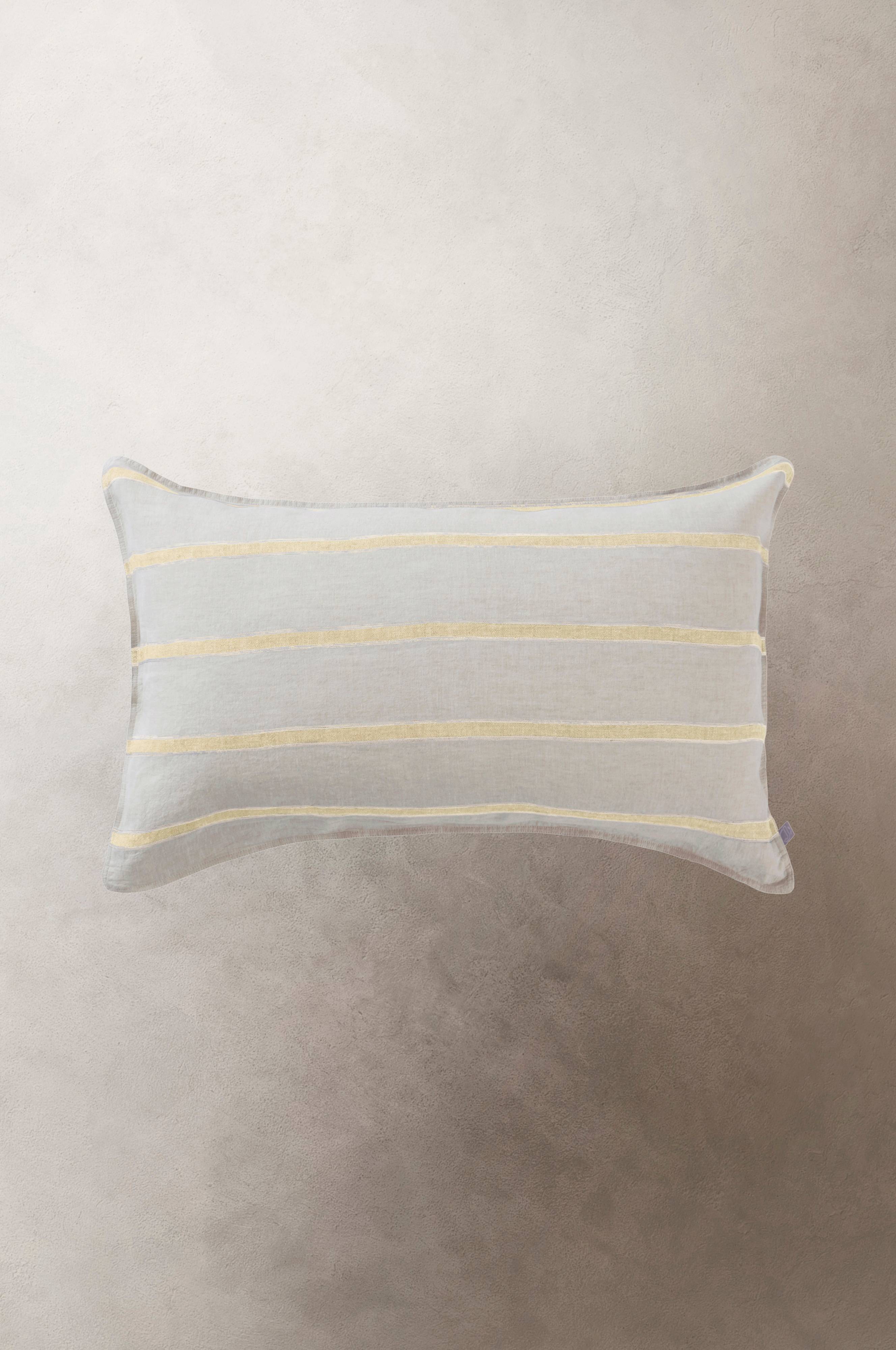1 poszewka dekoracyjna z tkanego w prążki lnu. Poszewka ma podwójne szwy wokół krawędzi, które tworzą delikatne i dyskretne obszycie. Zamek błyskawiczny z tyłu. Tkanina z lnu nadaje wnętrzom wspaniały, naturalny charakter, a dzięki lamówce wykonanej z barwionej przędzy poszewka będzie komponować się z każdym stylem, od uroczych wiejskich aranżacji po stylową klasykę.