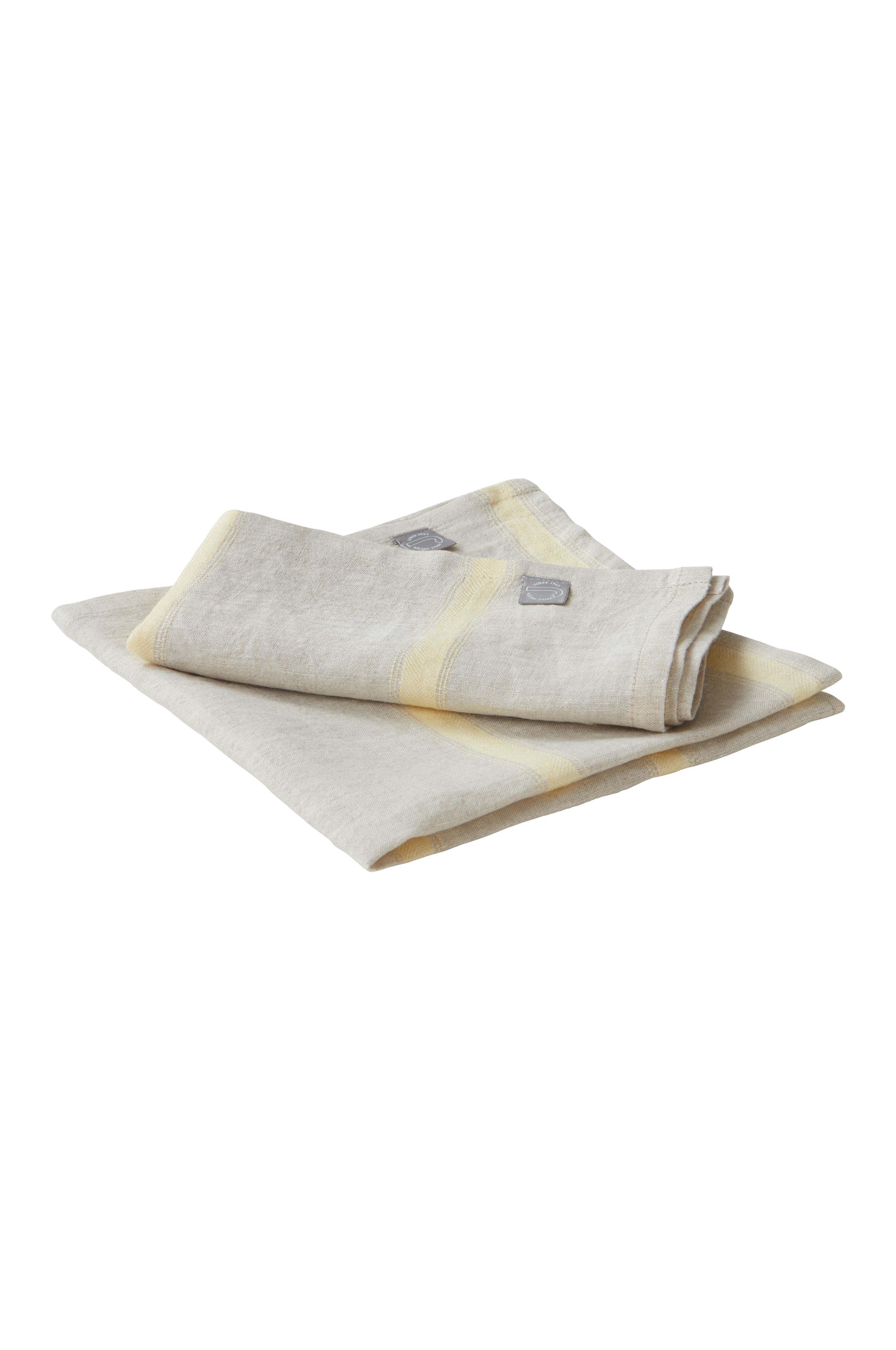 2 serwetki z tkanego w prążki lnu. Tkanina z lnu nadaje wnętrzom wspaniały, naturalny charakter, a dzięki lamówce wykonanej z barwionej przędzy serwetki będą komponować się z każdym stylem, od uroczych wiejskich aranżacji po stylową klasykę.