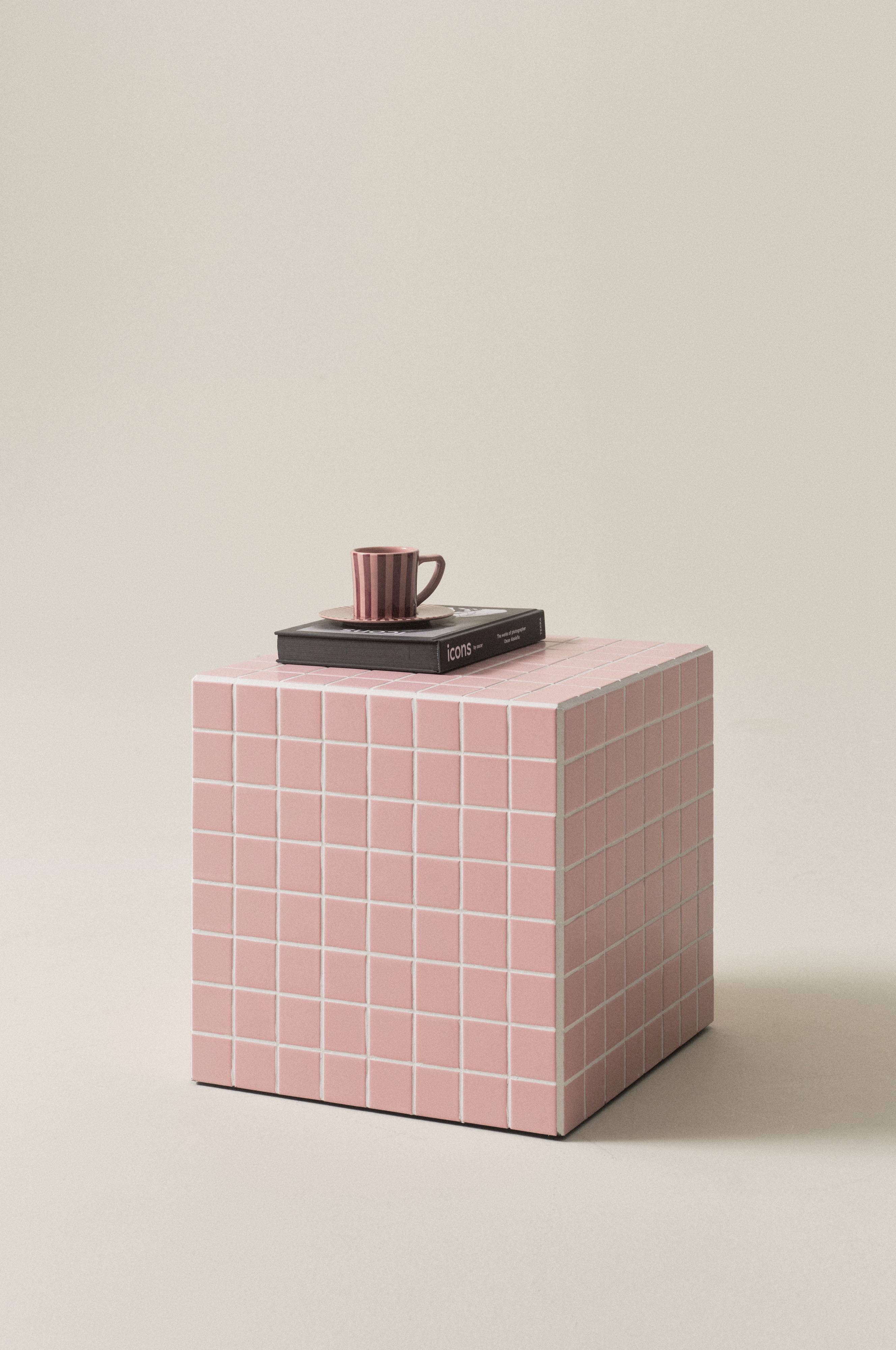 Stolik w kształcie sześcianu w całości pokryty kaflami i komponującą się z nimi fugą. Stelaż wykonany z płyty MDF. Stolik ten to mebel, który ma wiele zastosowań, można ustawić go obok sofy lub w jasnym kąciku, gdzie posłuży jako stojak dla roślin. Uruchom swoją kreatywną stronę i pozbądź się ograniczeń urządzając swoje wnętrza, odmiana stylizacji za pomocą niewielkich mebli, które łatwo można przenosić to prawdziwa rozkosz.