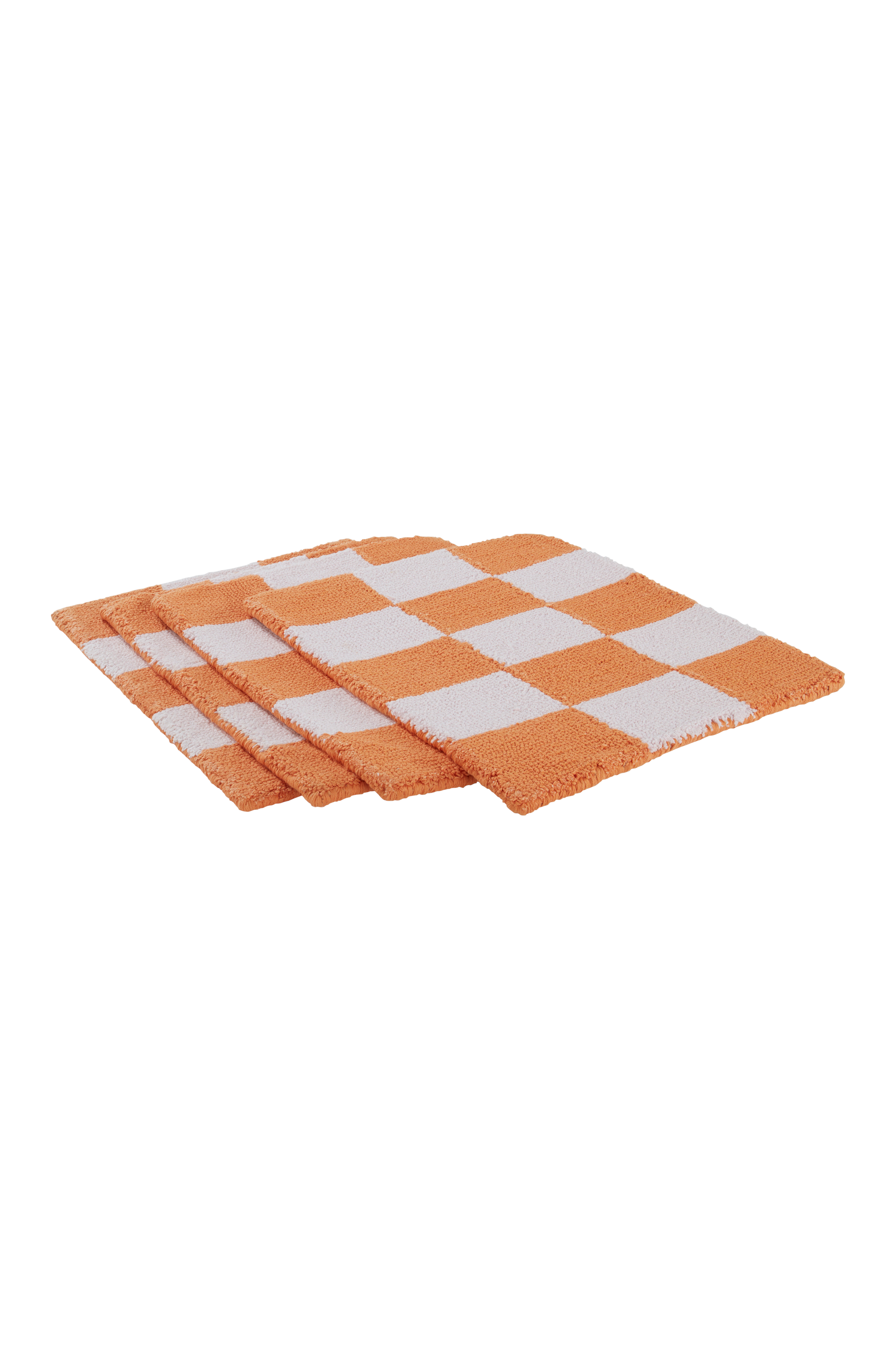 4 maty stołowe przypominające niewielkie dywaniki z włosia. Ręcznie tuftowane, z przędzą bawełnianą. Z KIO CHECK stworzysz proste nakrycie, dzięki któremu odkładaniu sztućców czy odstawianiu szklanki nie będzie towarzyszył najmniejszy dźwięk. Wzór szachownicy powstał z barwionej przędzy i przyciąga wszystkie spojrzenia. Grubość 1-1,2 cm. 2900-3100 g/m².