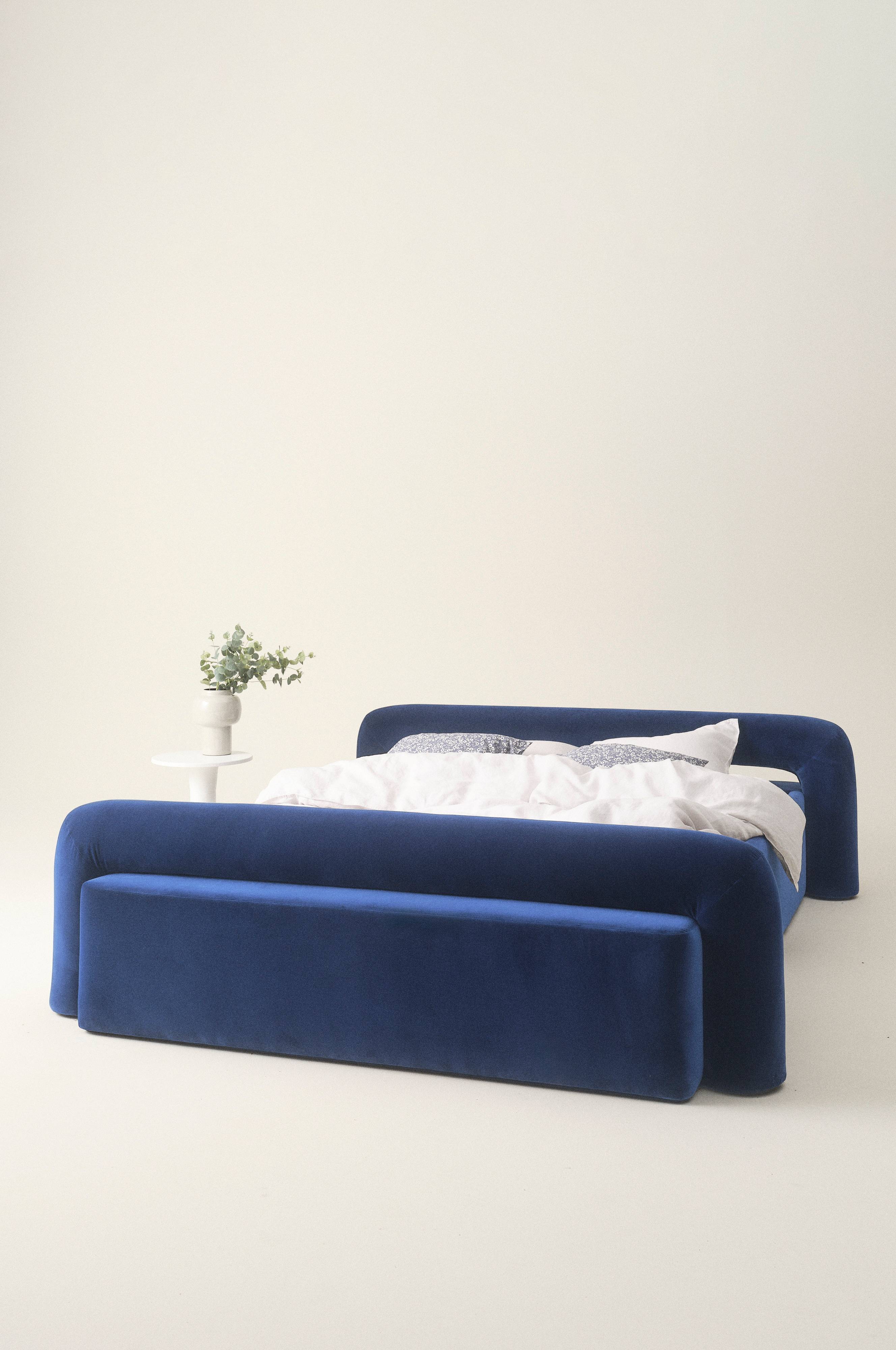 Luksusowo wyglądająca rama łóżka z miękko wyściełanymi zagłówkiem i zanóżkiem, która aż zaprasza by ułożyć się do snu. Dla maksymalnej wygody wyściełane są również boki. Rama pokryta jest miękkim i połyskującym pluszem. Rama wykonana jest z drewna sosnowego z certyfikatem FSC i ze sklejki. Dno ramy stanowią listwy ze sklejki, do których możesz dopasować materac klasyczny lub materac sprężynowy, w zależności od tego, który uważasz za bardziej wygodny. Materac klasyczny/materac sprężynowy sprzedawany jest osobno. Wymaga częściowego montażu. Do produktu dołączona jest instrukcja.