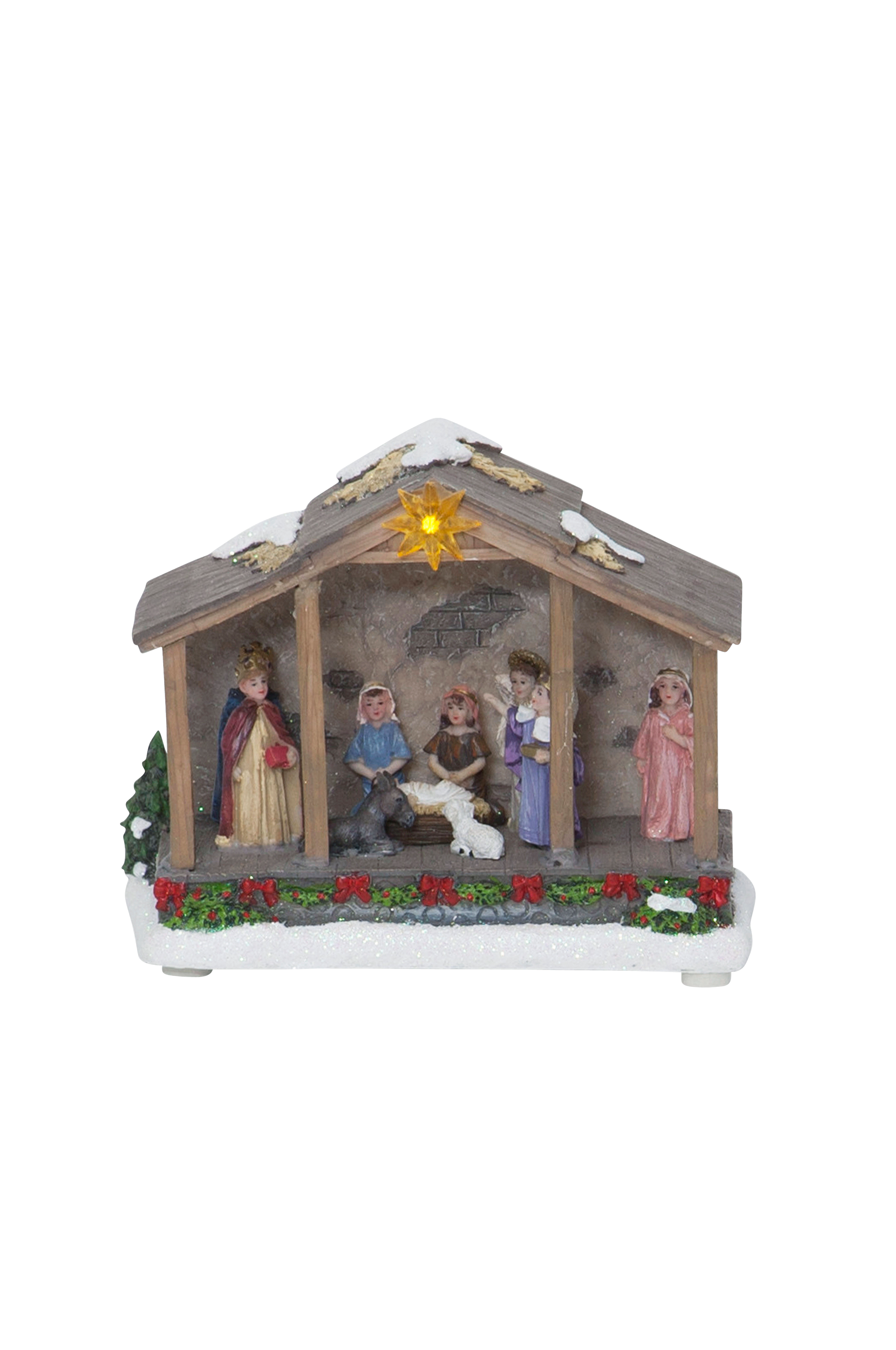 Dekoracja w kształcie żłobka stworzy w Twoim domu cudowny, świąteczny nastrój. Żłobek z 3 świecącymi diodami LED. Do użytku w pomieszczeniach. Oświetlenie z cyklicznym wyłącznikiem czasowym, włączającym światło na 6 godzin i wyłączającym na 18 godzin. Żarówki w zestawie. Zasilane 2 bateriami AA. Baterie sprzedawane oddzielnie.
