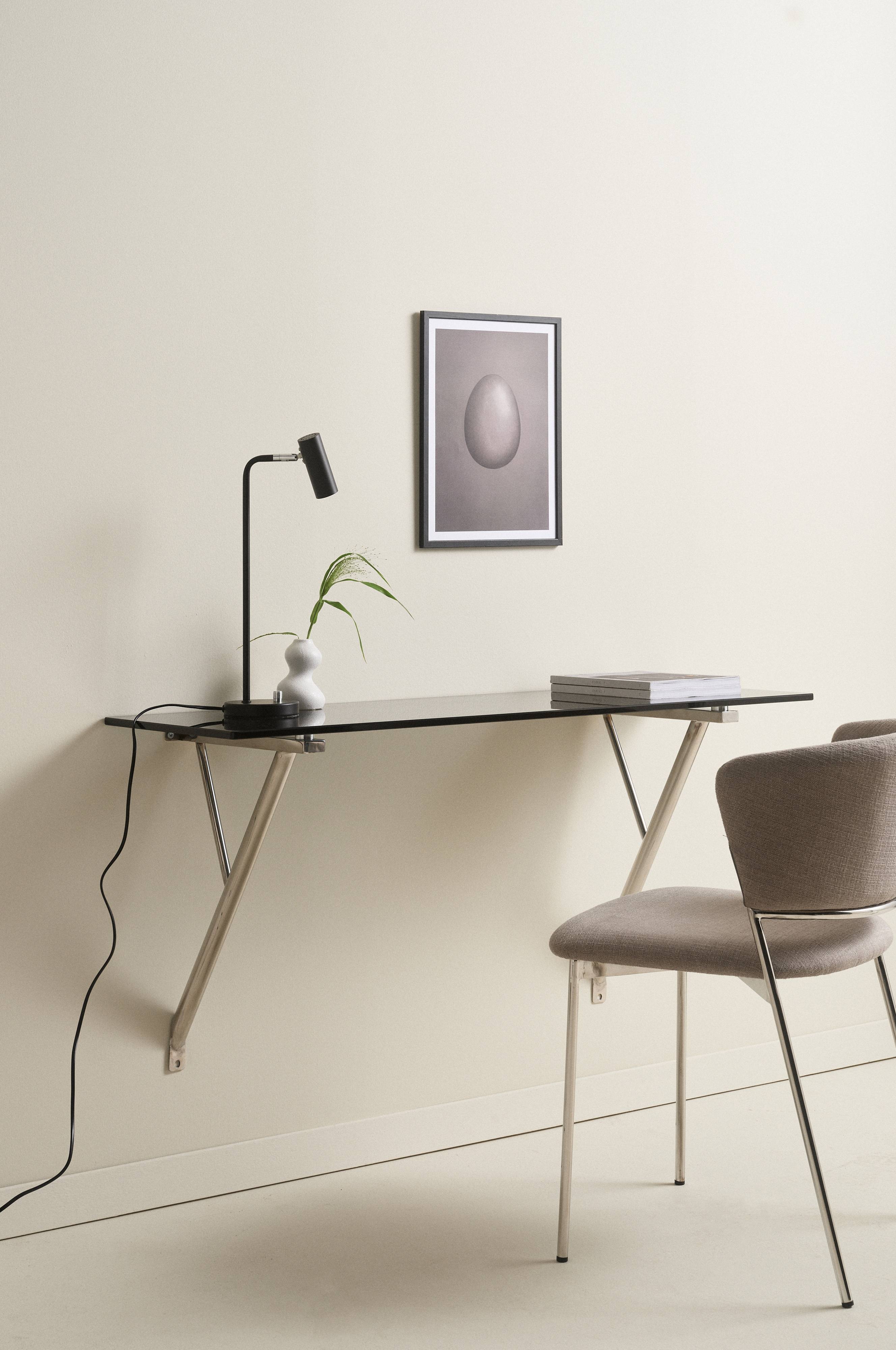 Biurko montowane do ściany wykonane ze szkła i stali nierdzewnej o chromowanym wykończeniu. Praktyczny model montowany do ściany na wysokości odpowiedniej dla użytkownika. Biurko odznacza się modnym i surowym kształtem i zmieści się również w niewielkim pomieszczeniu. Wymaga częściowego montażu. Do produktu dołączona jest instrukcja montażu.