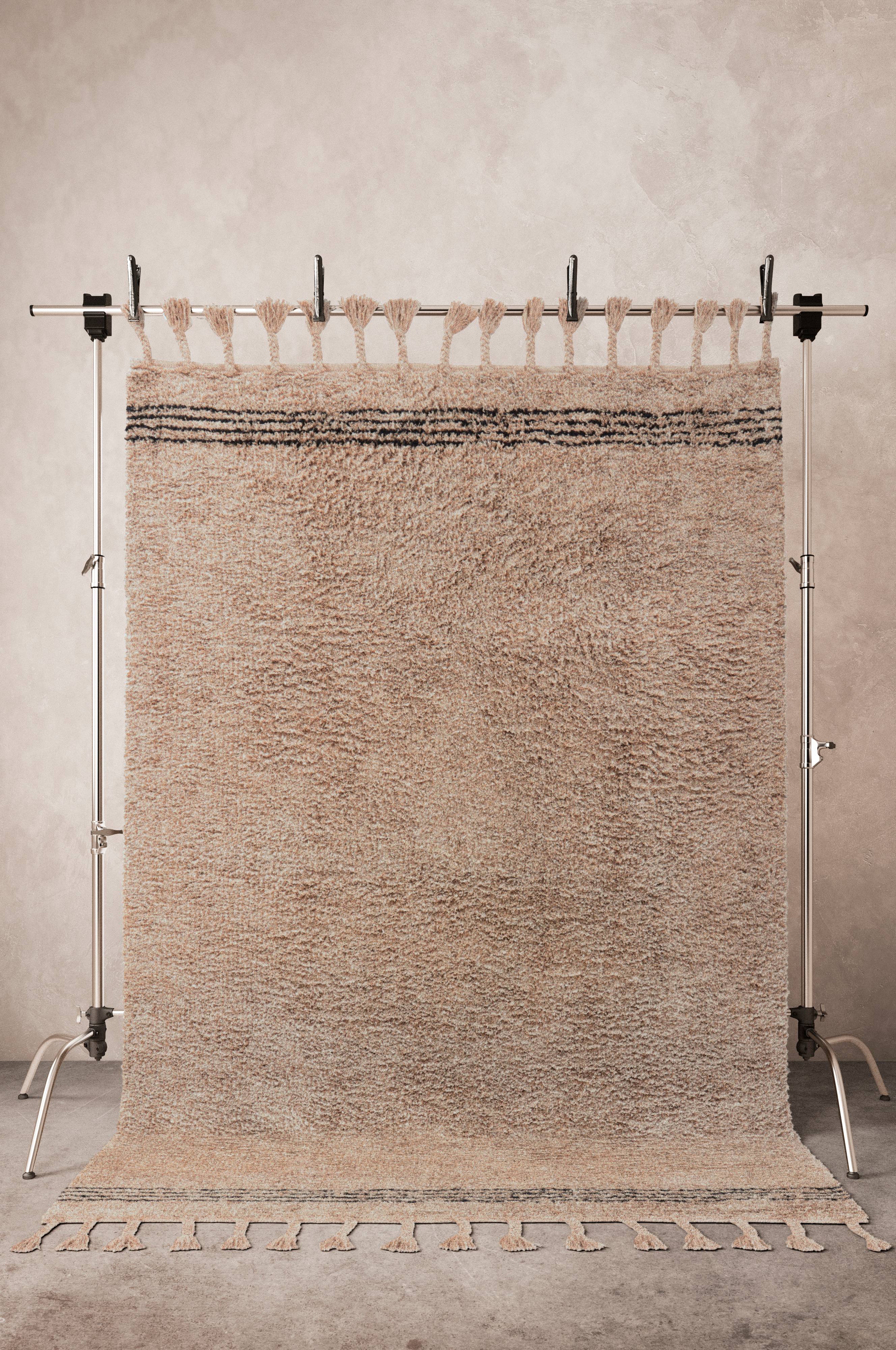 Jednokolorowy dywan bawełniany o miękkim, puszystym włosiu. Stabilna krawędź wzdłuż krótszych boków z solidnymi plecionymi frędzlami. Przyjemny, miękki dywan, który doskonale pasuje pod stolik do salonu albo do sypialni. Długość frędzli 20 cm. Długość włosia 2-2,5 cm. Grubość 2,5-2,7 cm. 2500-2700 g/m².