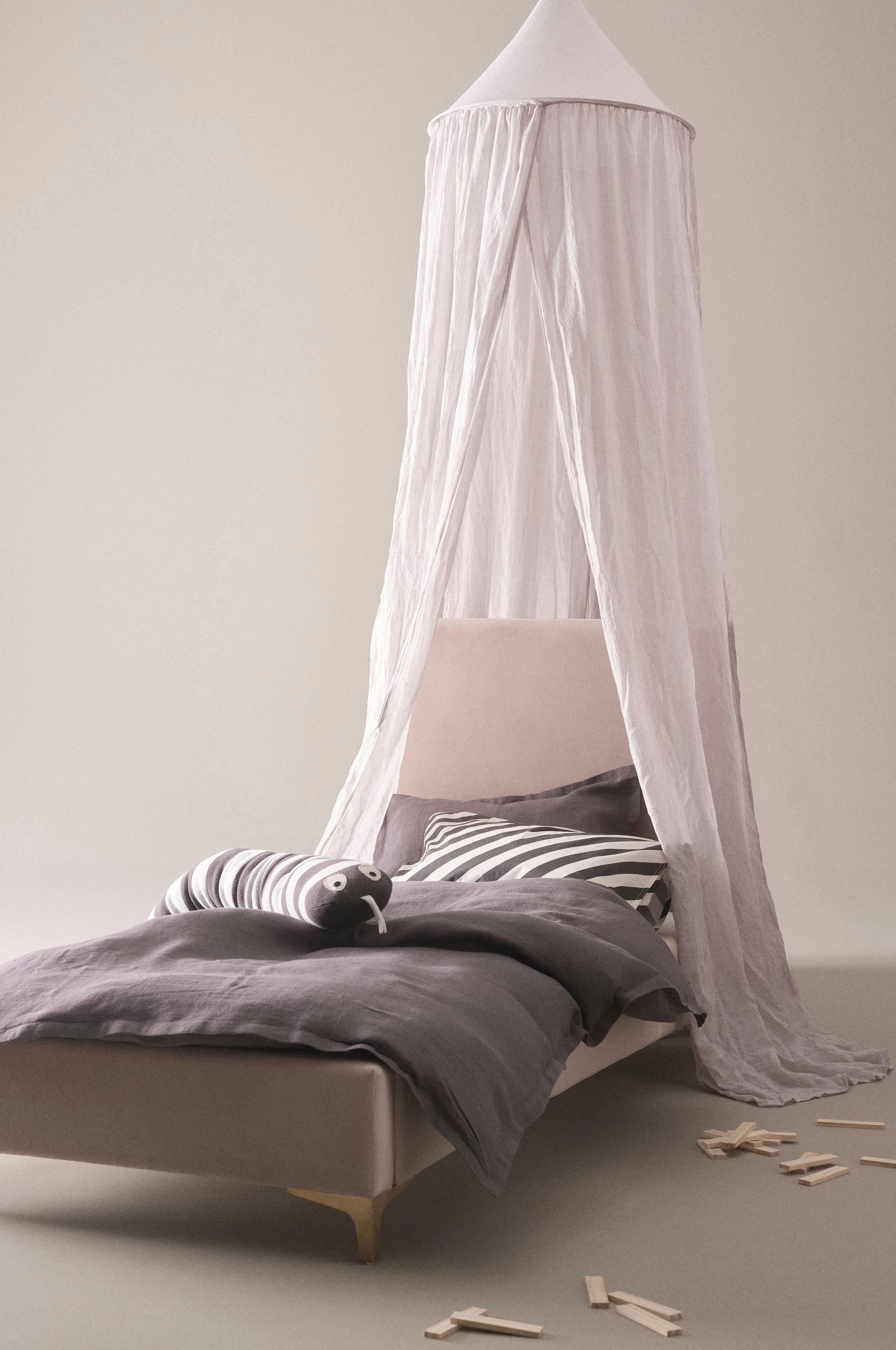 Baldachim z delikatnego i zwiewnego materiału wykonanego z poliestru i bawełny. Metalowa obręcz w górnej części zapewni piękne układanie się materiału, pętla do zawieszenia znajduje się na szczycie baldachimu. W tym modelu przód i tył baldachimu nie są zasłonięte, co może być zaletą dla tych, którzy wolą zamontować nocną lampkę na ścianie za łóżkiem. Baldachim to sposób na wyjątkowo przytulne miejsce do spania.