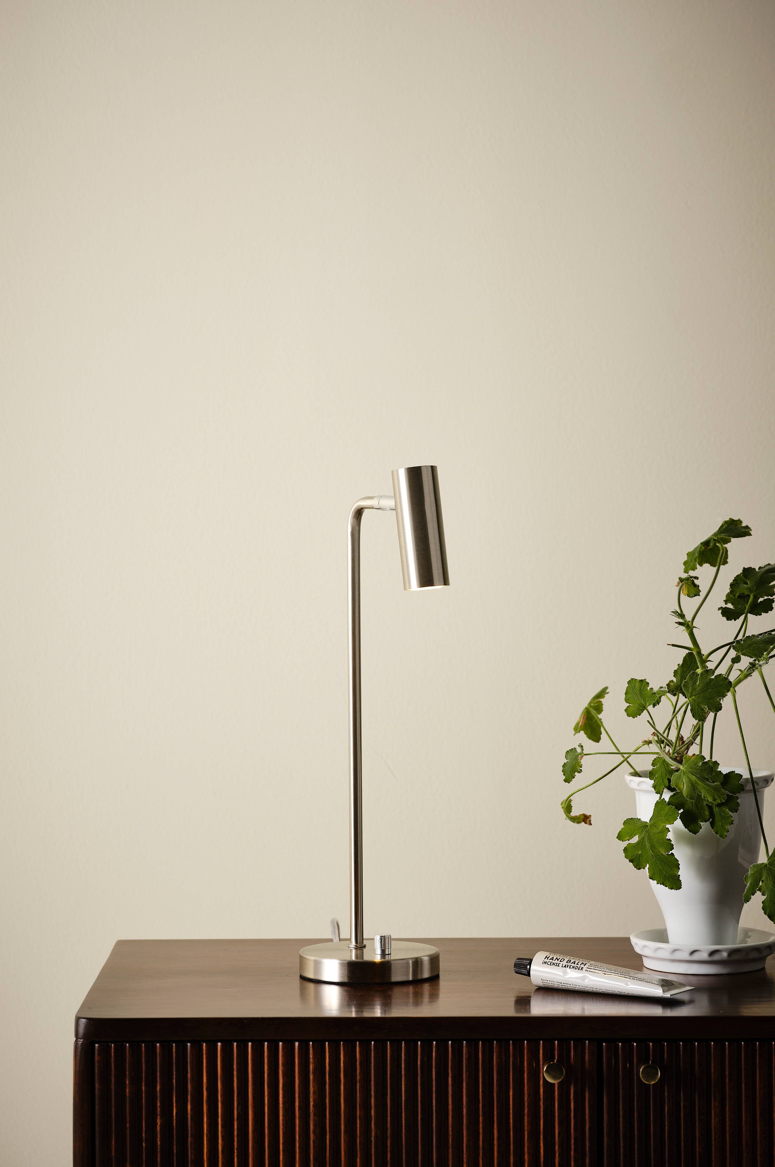 Metalowa lampa stołowa ze ściemniaczem. Lampa jest łatwa do ustawienia i ma stylowy, nowoczesny charakter. Przezroczysty przewód o długości 1,7 m.