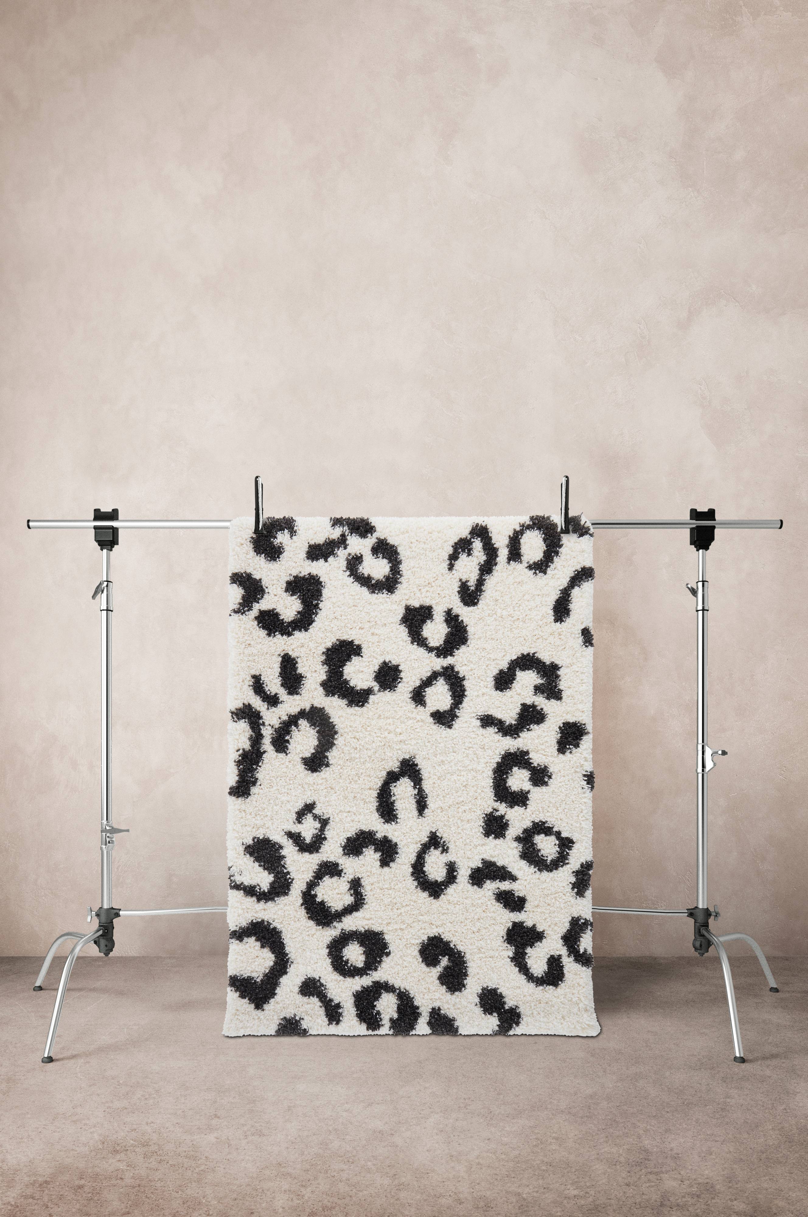 Dywan z włosia ozdobiony wzorem cętek geparda na jasnym tle. Ma gęste, przyjemne włosie w którym grube, połyskliwe nici łączą się z miękką, puszystą przędzą. Dywan zapewnia wygodne miejsce do siedzenia, jednocześnie tłumiąc dźwięk przez co idealnie pasuje do pokoju dziecięcego. Długość włosia 4,5 cm. Grubość 5 cm. 2700 g/m².