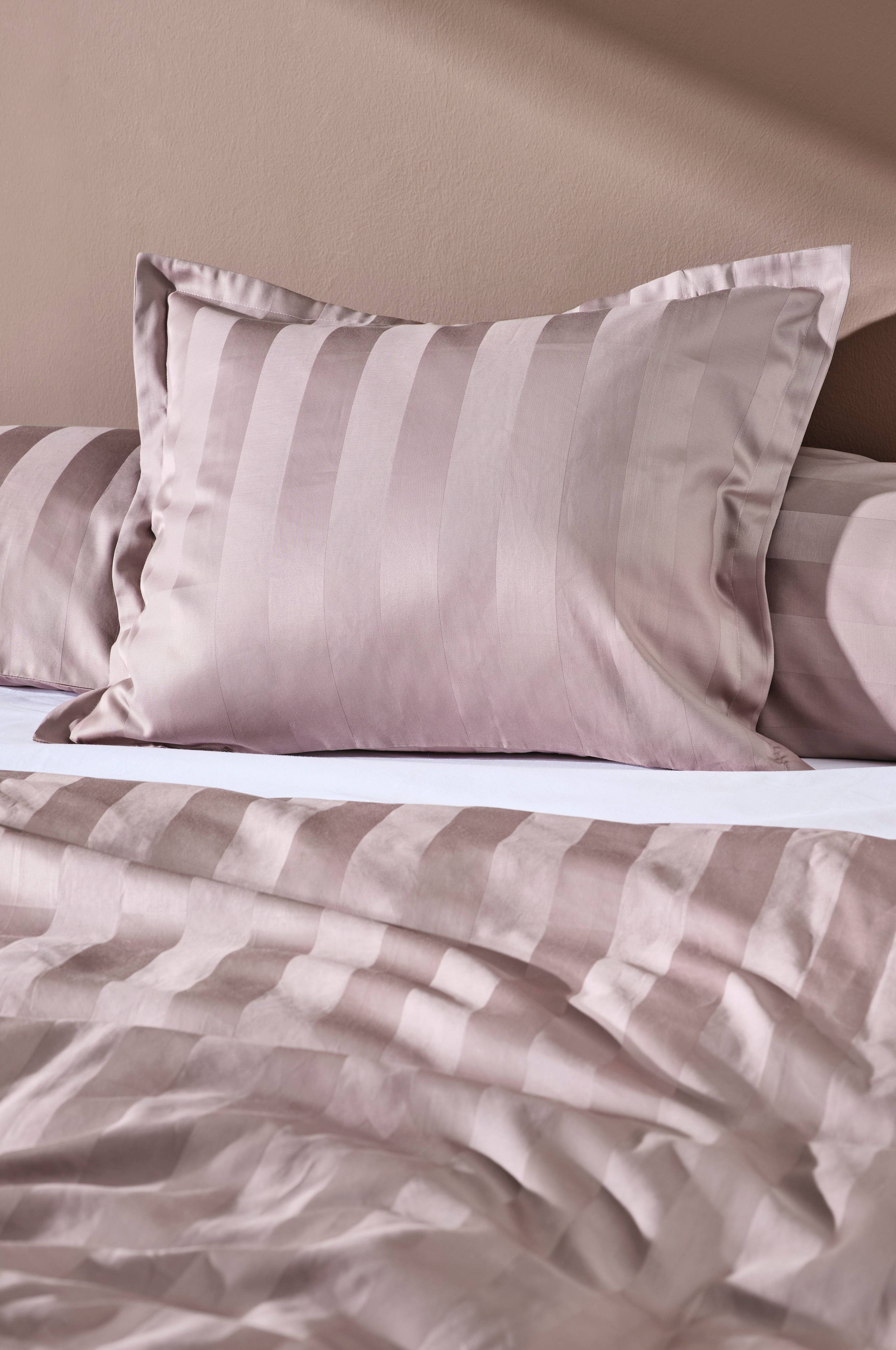 1 poszewka z ekologicznej bawełnianej satyny. Satyna to splot tkacki, z którego powstaje cudownie gładka, miękka i delikatna tkanina. Bawełna wykorzystana w procesie tkania tworzy materiał o wspaniałym połysku i luksusowym charakterze. LEONA to gładka poszewka na poduszkę ozdobiona tkanym wzorem w paski w uzupełniających się kolorach. Poszewka na trzech bokach ma 3 cm obszycie a w dolnej krawędzi zamek błyskawiczny. Gęstość splotu materiału wynosi 300 TC. (Gęstość splotu materiału oznacza ilość przeplecionych ze sobą nici, thread count, na cal kwadratowy materiału. Im wyższa gęstość tym lepsza jakość).