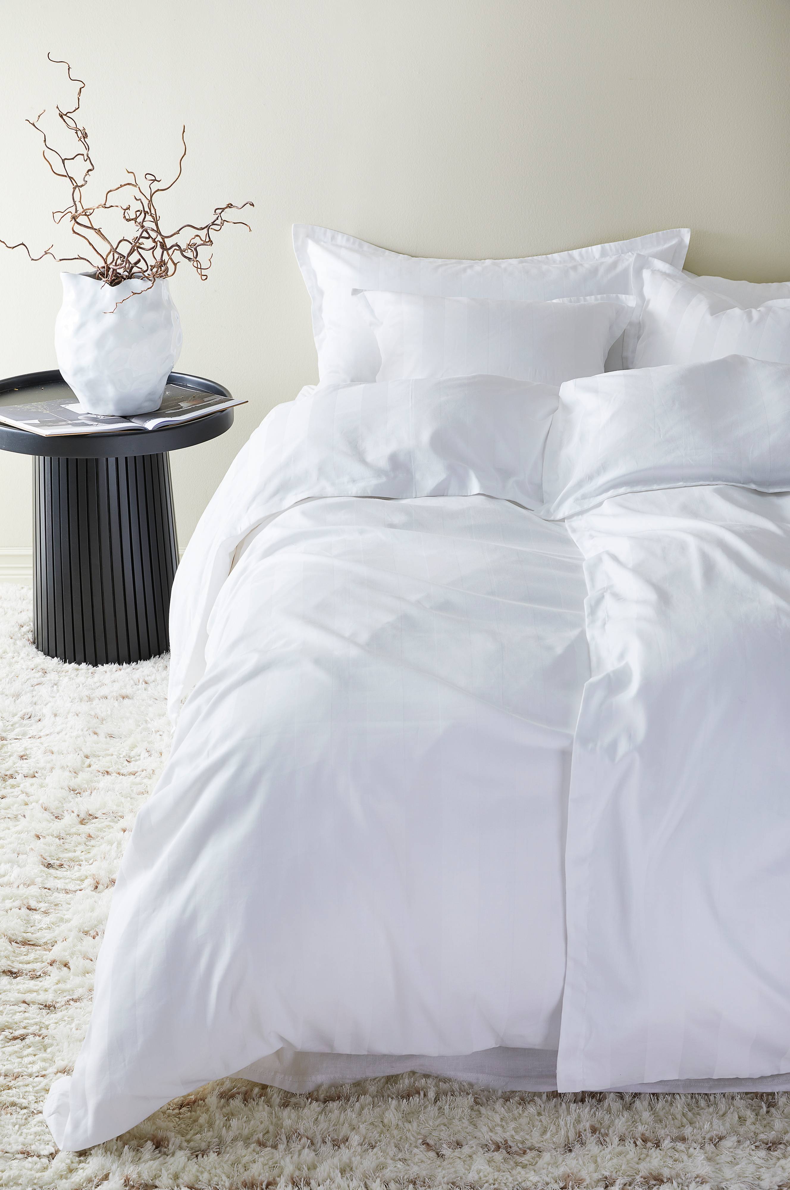 Poszwa na kołdrę z ekologicznej bawełnianej satyny. Satyna to splot tkacki, z którego powstaje cudownie gładka, miękka i delikatna tkanina. Bawełna wykorzystana w procesie tkania tworzy materiał o wspaniałym połysku i luksusowym charakterze. LEONA to gładka poszwa na kołdrę ozdobiona tkanym wzorem w paski w uzupełniających się kolorach. Gęstość splotu materiału wynosi 300 TC. (Gęstość splotu materiału oznacza ilość przeplecionych ze sobą nici, thread count, na cal kwadratowy materiału. Im wyższa gęstość tym lepsza jakość).