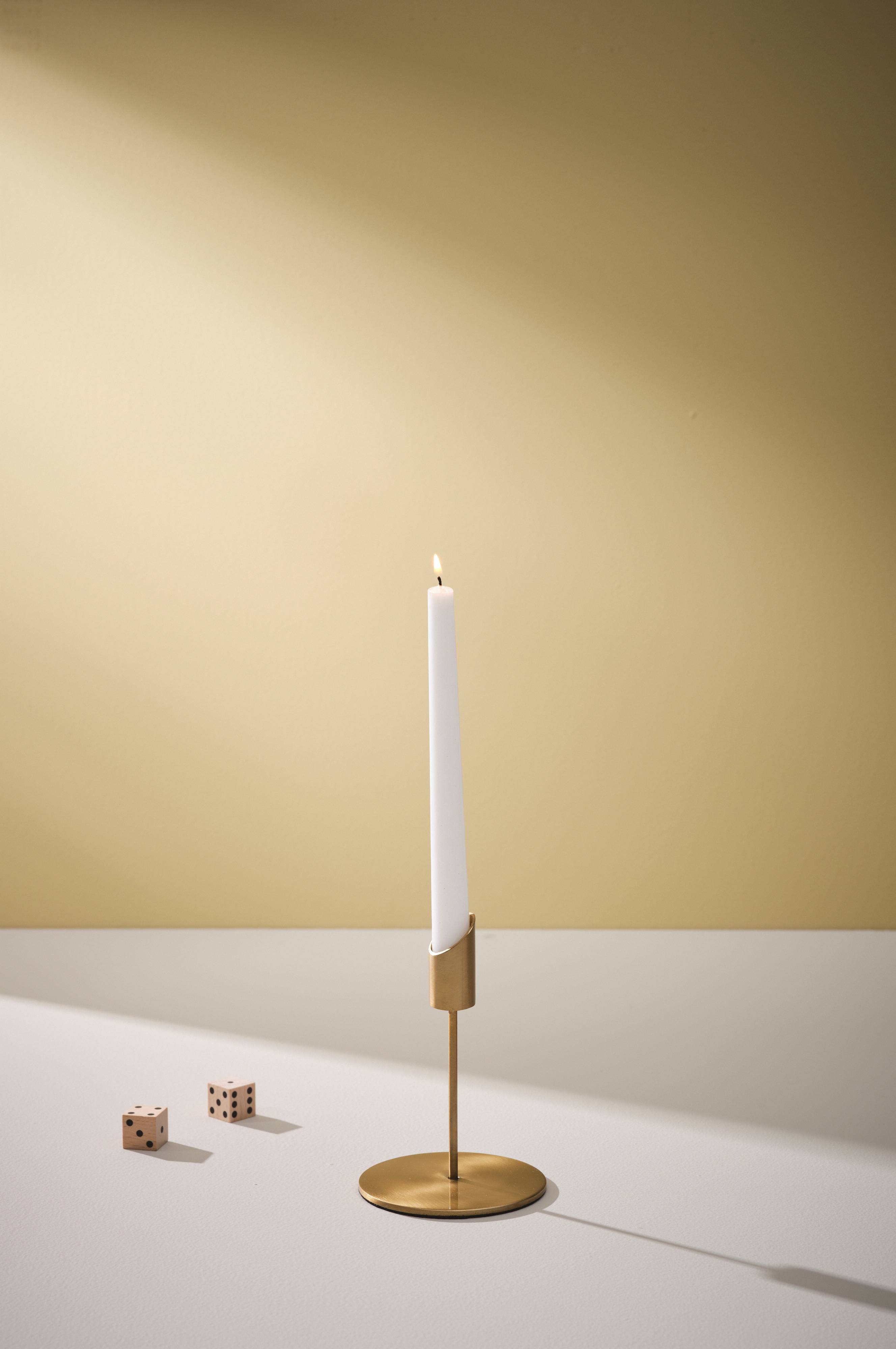 Żelazny świecznik na zwykłą świecę stearynową. Piękny, prosty kształt przyciąga uwagę go płonącej świecy. Powierzchnia z matowym wykończeniem. Świece sprzedawane są osobno.