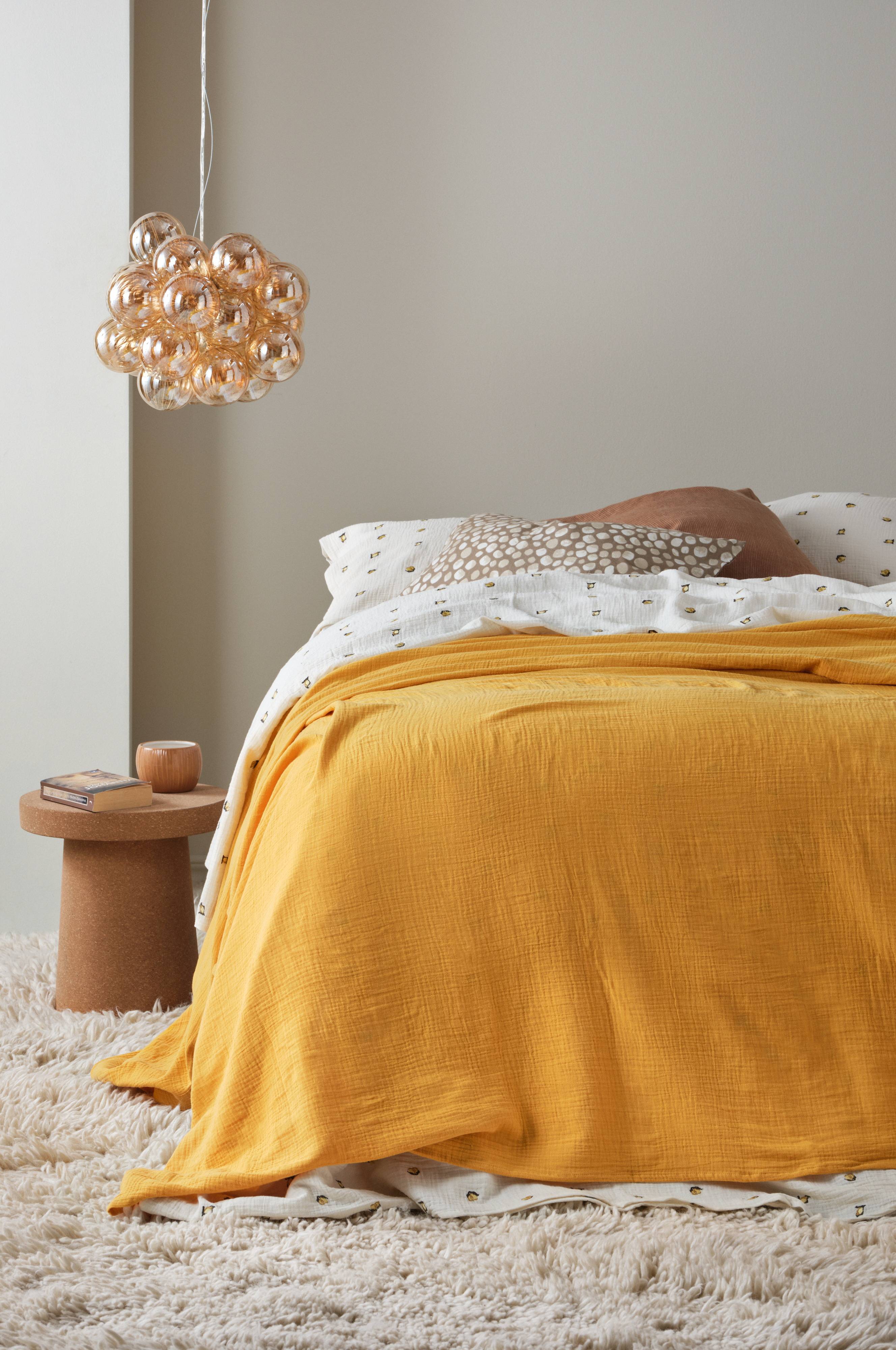 Jednokolorowa narzuta na łóżko podwójne. LILIA powstała z cudownego, ekologicznego, bawełnianego muślinu. Muślin jest miękką tkaniną, tkaną w taki sposób, aby powstały niewielkie wybrzuszenia, dzięki którym materiał jest miękki i łatwy w utrzymaniu. Nie wymaga prasowania ani maglowania. Poszewki na poduszkę nie są dołączone do zestawu - dostępne do kupienia osobno.