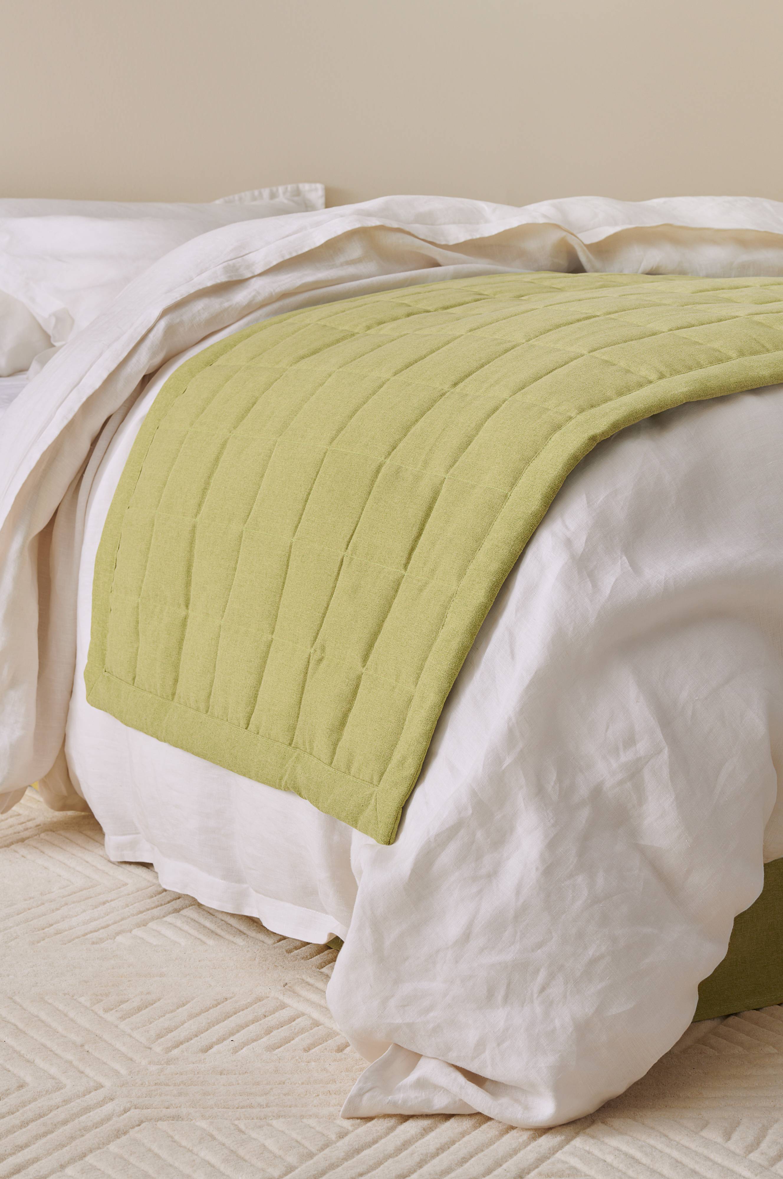 Jednokolorowa narzuta hotelowa z miękkiego poliestru o delikatnej strukturze imitującej len. Narzuta LINDEN jest pikowana w dekoracyjne kwadraty. Wypełnienie z poliestru 80 g/m².