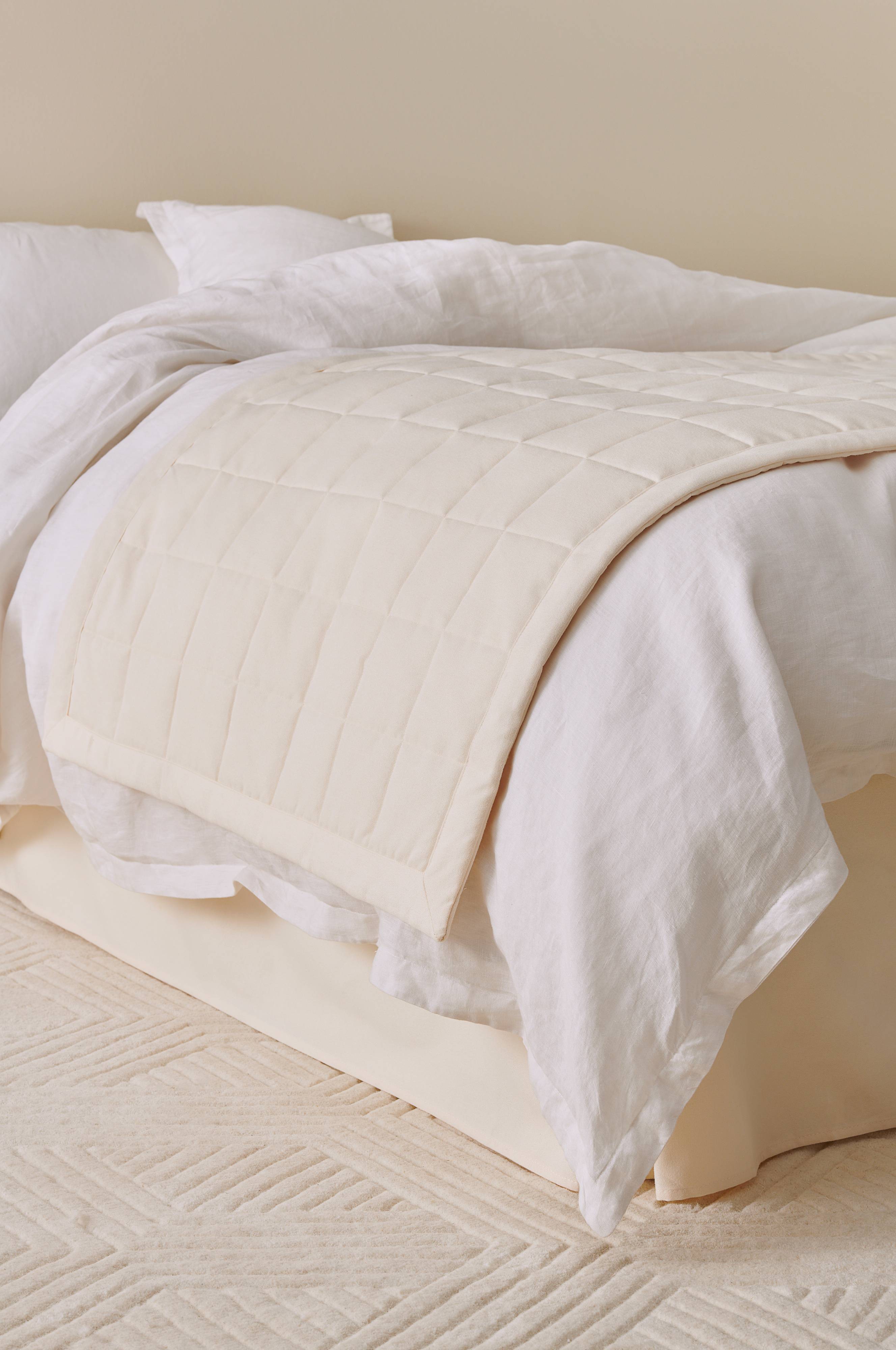 Jednokolorowa narzuta hotelowa z miękkiego poliestru o delikatnej strukturze imitującej len. Narzuta LINDEN jest pikowana w dekoracyjne kwadraty. Wypełnienie z poliestru 80 g/m².