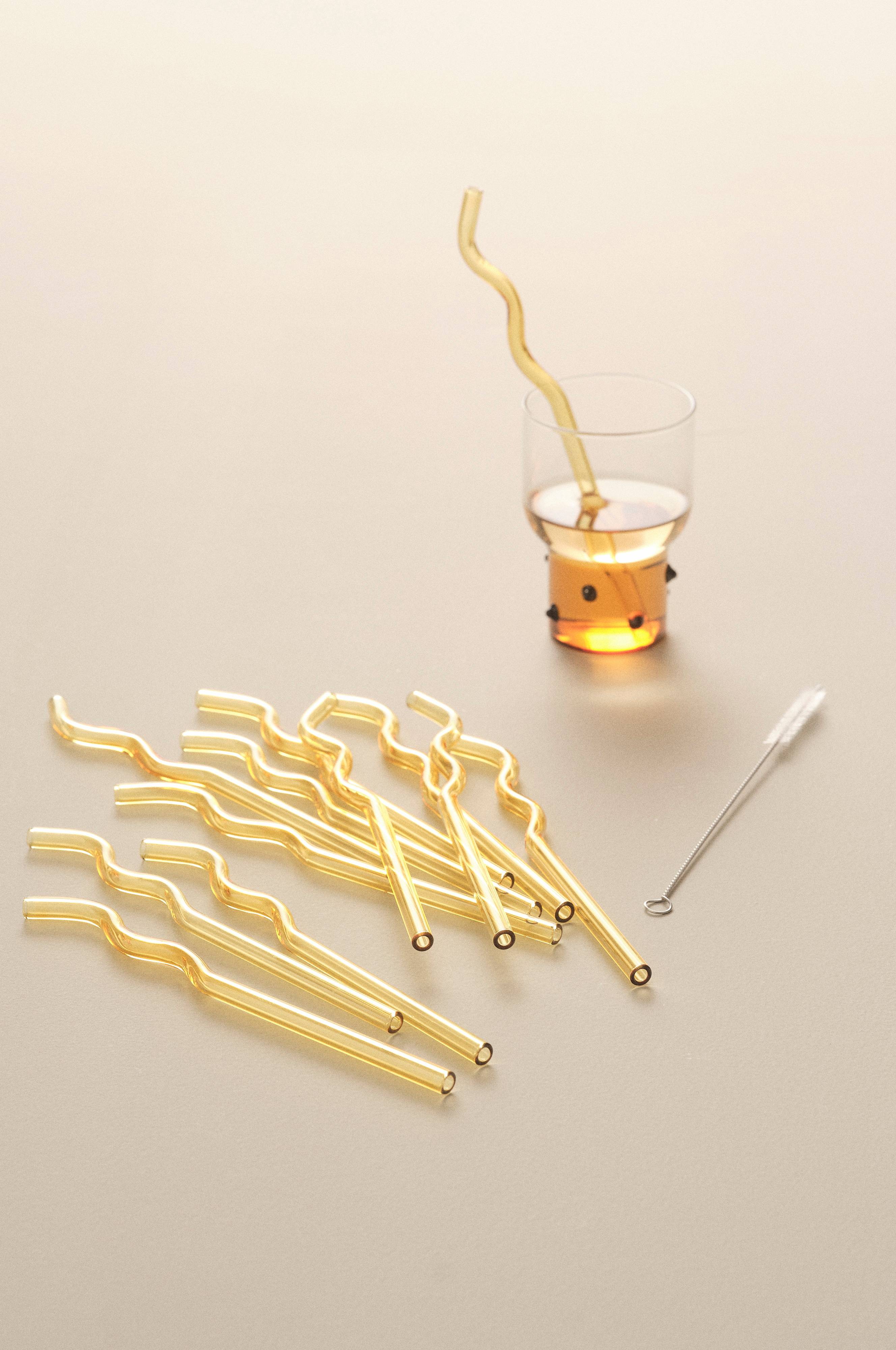 12 rurek z barwionego szkła. Odświętne rurki świetnie sprawdzą się zarówno przy ciepłych, jak i zimnych napojach.