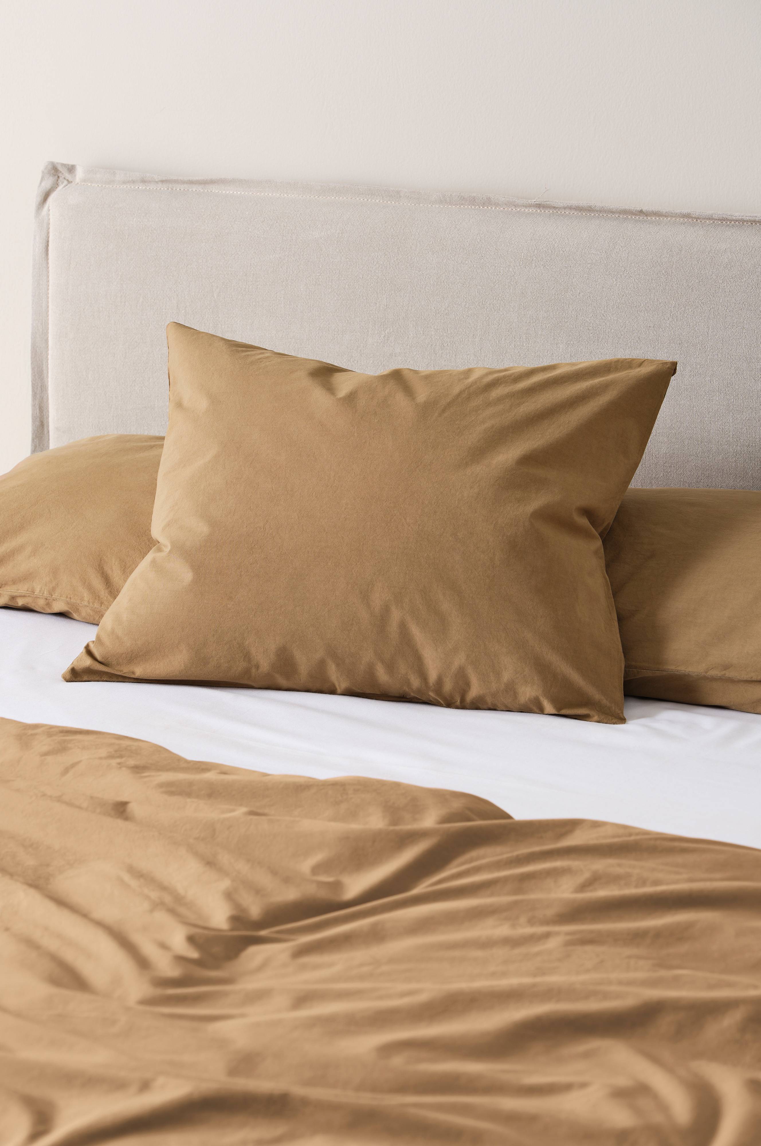Poszewka na poduszkę z perkalu z ekologicznej bawełny. Perkal tkany jest z cienkich, delikatnych nici bawełnianych i jest niewiarygodnie miękki i piękny. LOCRI wykonany jest z ekologicznej bawełny barwionej naturalnymi farbami roślinnymi w delikatnych odcieniach. Barwienie tkanin farbami pochodzenia roślinnego pozwala na osiągnięcie pięknych kolorystycznych kontrastów. Ekologiczna, barwiona roślinnymi farbami pościel to świadomy wybór, który ma znaczenie. Gęstość splotu materiału wynosi 200 TC. (Gęstość splotu materiału oznacza ilość przeplecionych ze sobą nici, thread count, na cal kwadratowy materiału. Im wyższa gęstość tym lepsza jakość).