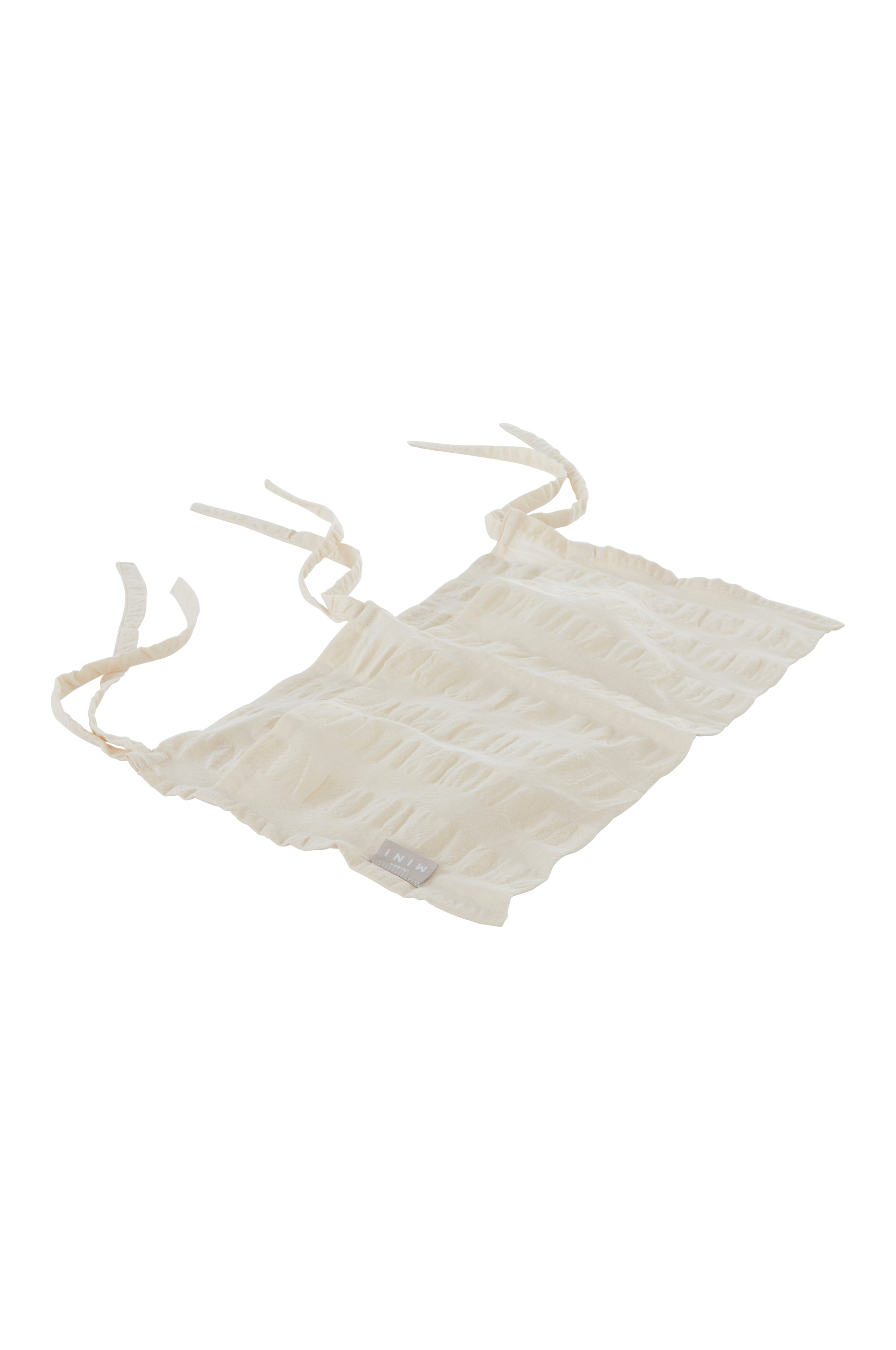Kieszeń do przechowywania wykonana ze ślicznego kreponu z ekologicznej bawełny posiadającej certyfikat. Seria LOLO jest gładka i jednocześnie ozdobiona wzorem w paski, została wykonana z tkaniny tkanej na płasko, która przeplata się z pasami na kreponie, czyli tkaninie o bąbelkowej strukturze. Tkanina została utkana z barwionej przędzy i poddana praniu dla uzyskania większej miękkości. Gramatura tkaniny 225 g/m².