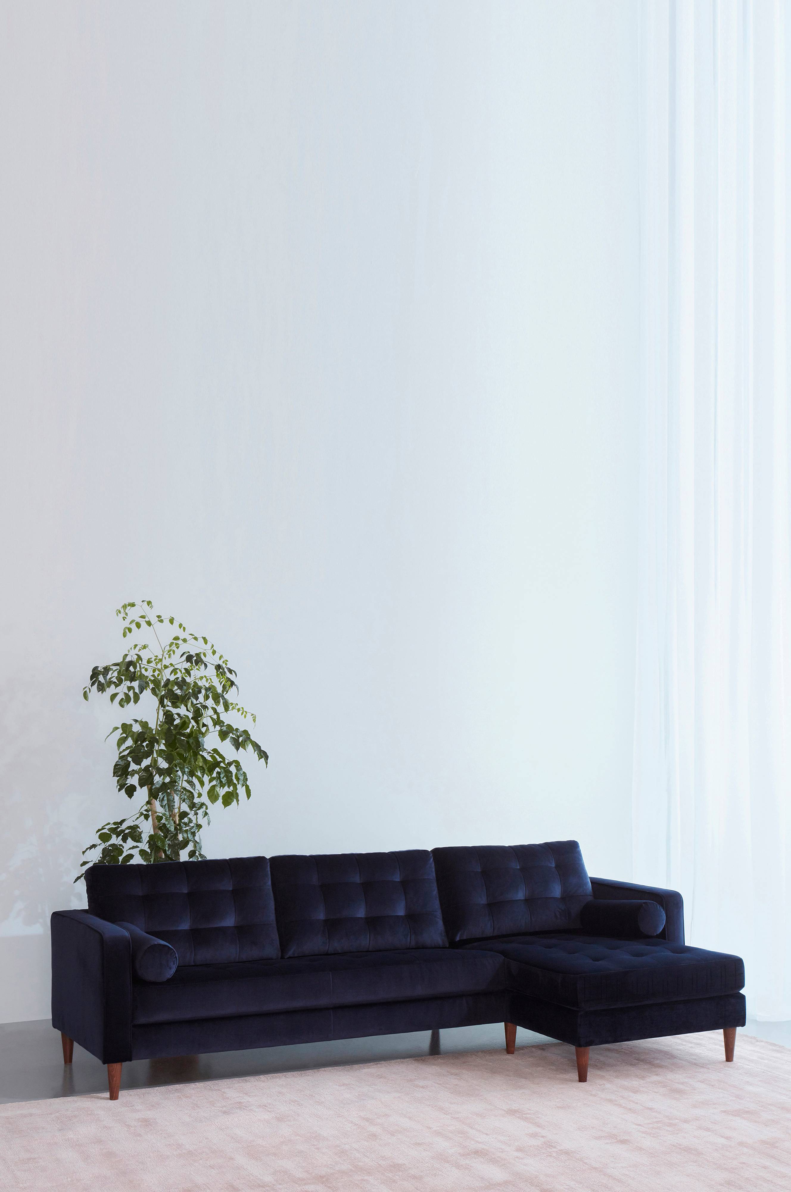 3-osobowa sofa LOULE to stylowa aksamitna sofa z sofą, którą można zamontować po prawej lub lewej stronie. Cała sofa emanuje luksusem i stylem. 3-osobowa sofa LOULE ma wytrzymałą aksamitną tkaninę poliestrową i drewniane nóżki. Drobne detale z tyłu i solidna rama z drewna sosnowego i sklejki zapewniają komfort siedzenia dzięki fantastycznej strukturze z zimnej pianki, zygzakowatemu zawieszeniu, elastycznym paskom i wygodnej wyściółce poliestrowej. Cylindryczne poduszki zapewniają poczucie luksusu w każdym miejscu.